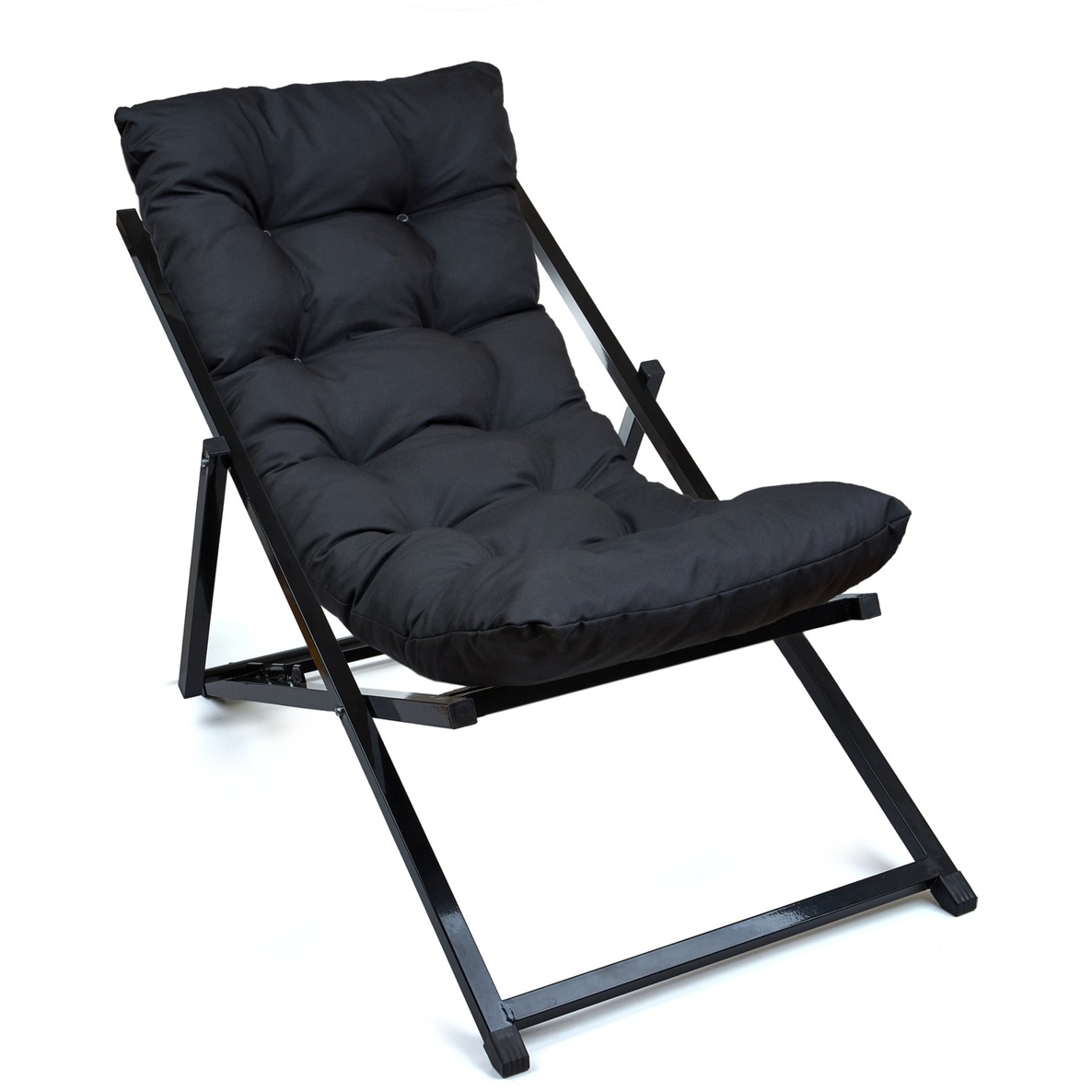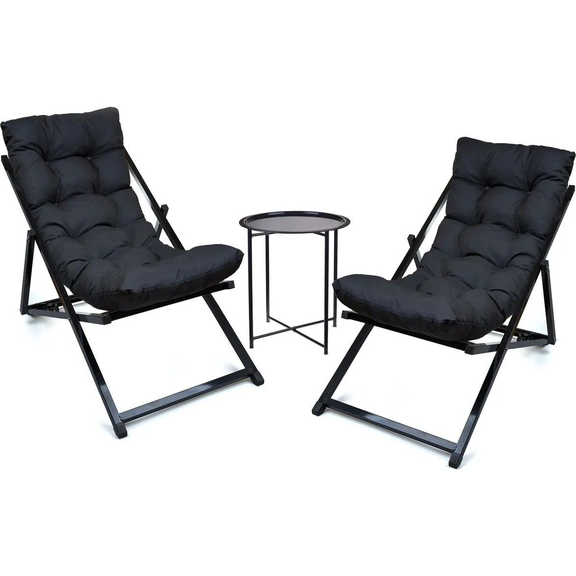 Hundemir Katlanabilir Minderli Bahçe Balkon Teras Şezlong 2 Şezlong 1 Sehpa (Siyahiskelet )