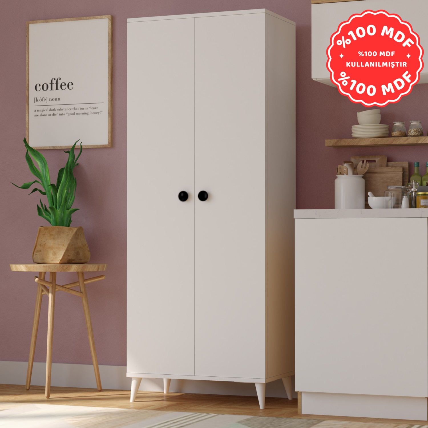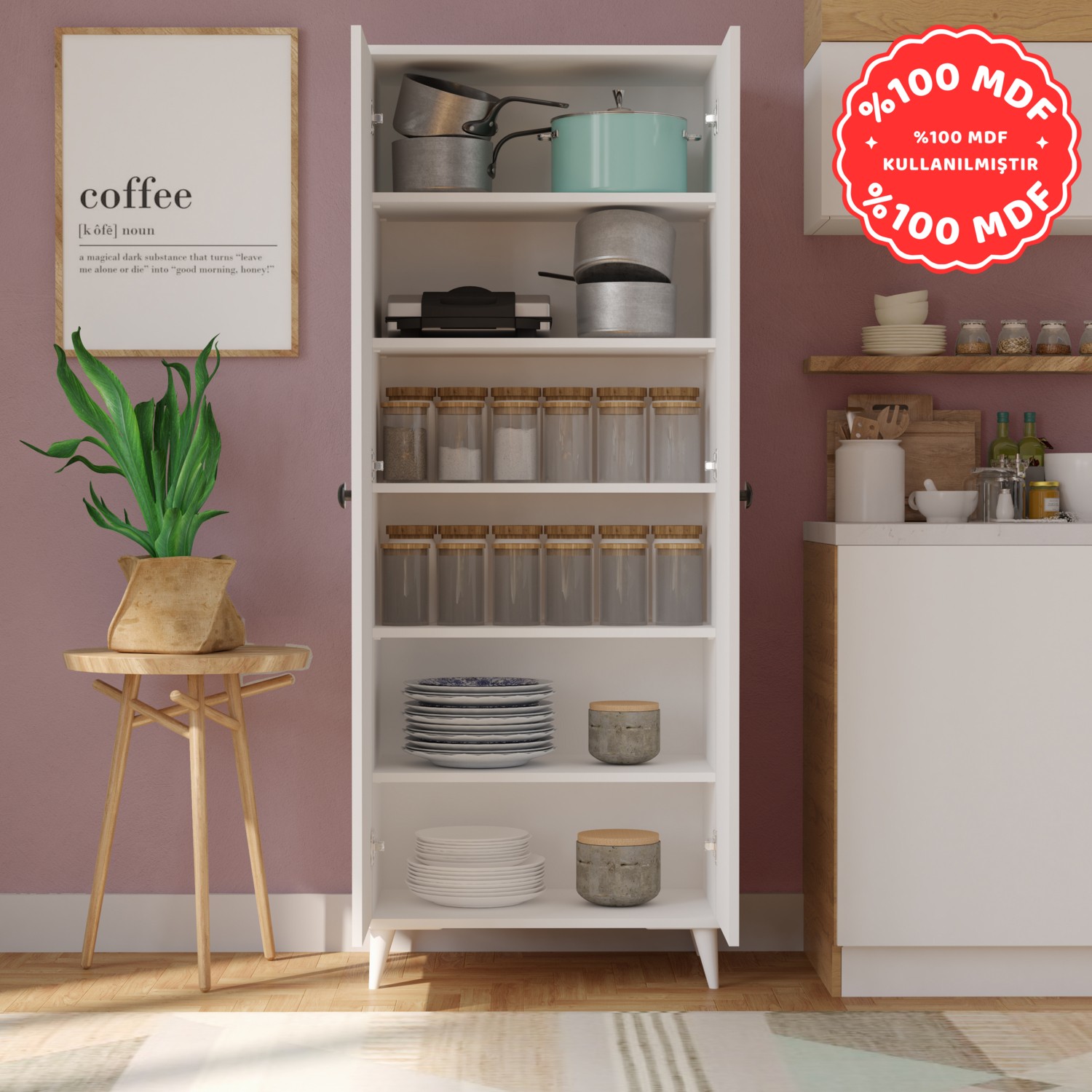 İmbaş 2 Kapaklı 5 Raflı Mega Çok Amaçlı Mutfak Dolabı Banyo Dolabı Beyaz %100 Mdf
