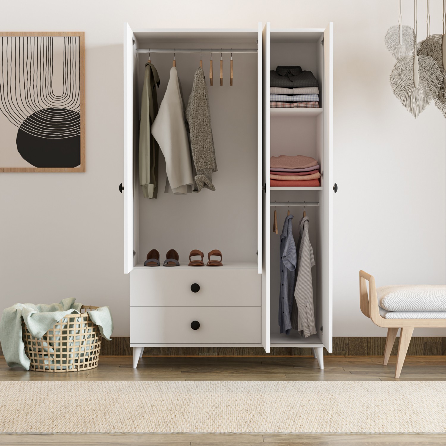 İmbaş Opal 3 Kapaklı 2 Çekmeceli Gardırop