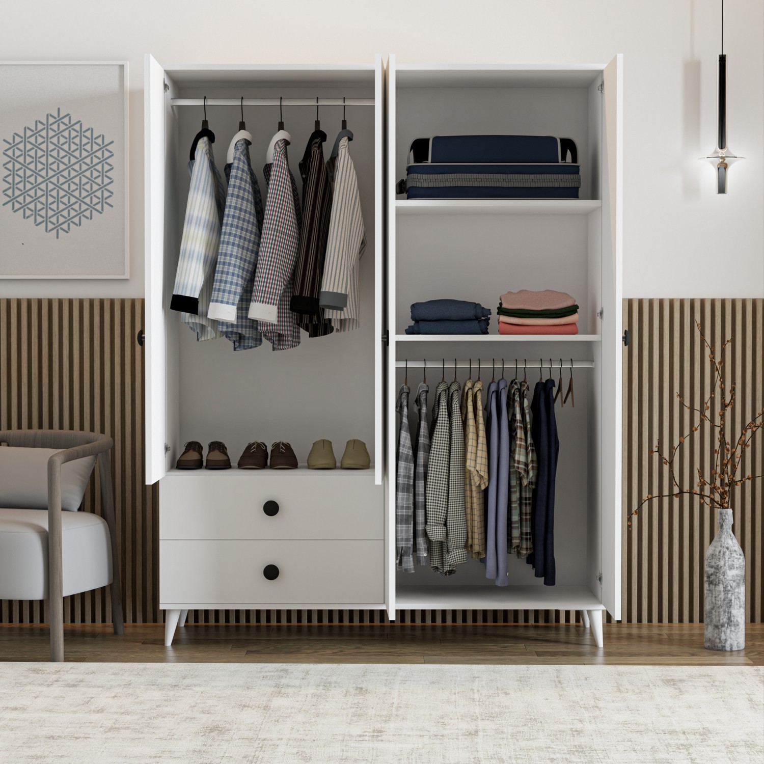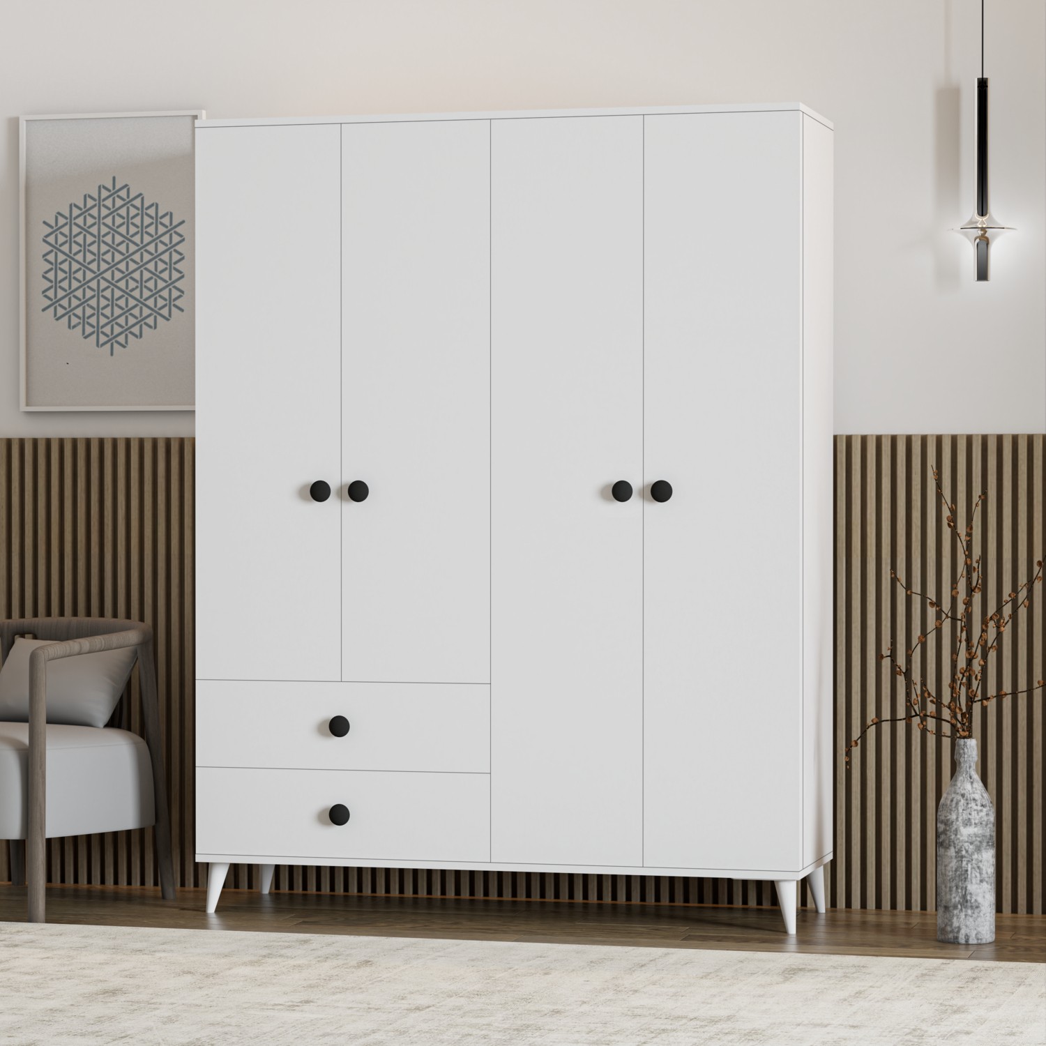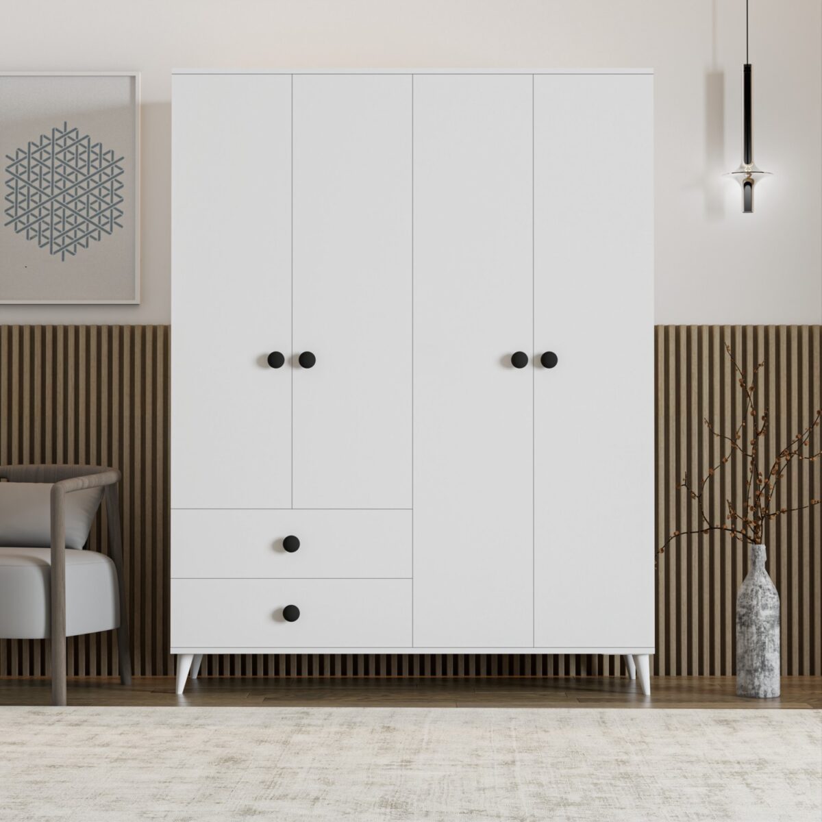 İmbaş Opal 4 Kapaklı 2 Çekmeceli Gardırop