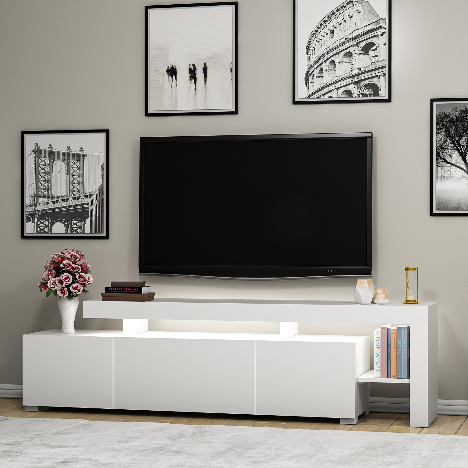 İnarch Dizayn Beliz Led Işıklı Tv Ünitesi, Tv Sehpası, Raflı – Parlak Beyaz için 3 değerlendirme