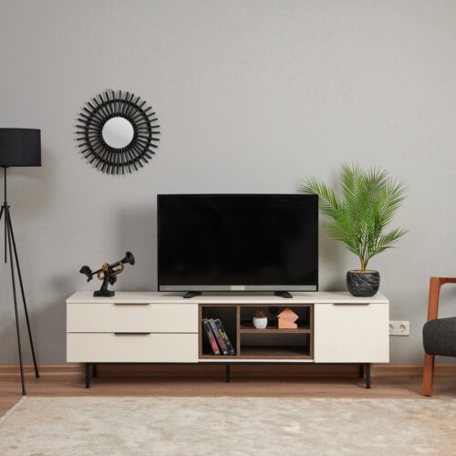 İnarch Dizayn Beliz LED Işıklı Tv Ünitesi, Tv Sehpası, Raflı – Traverten