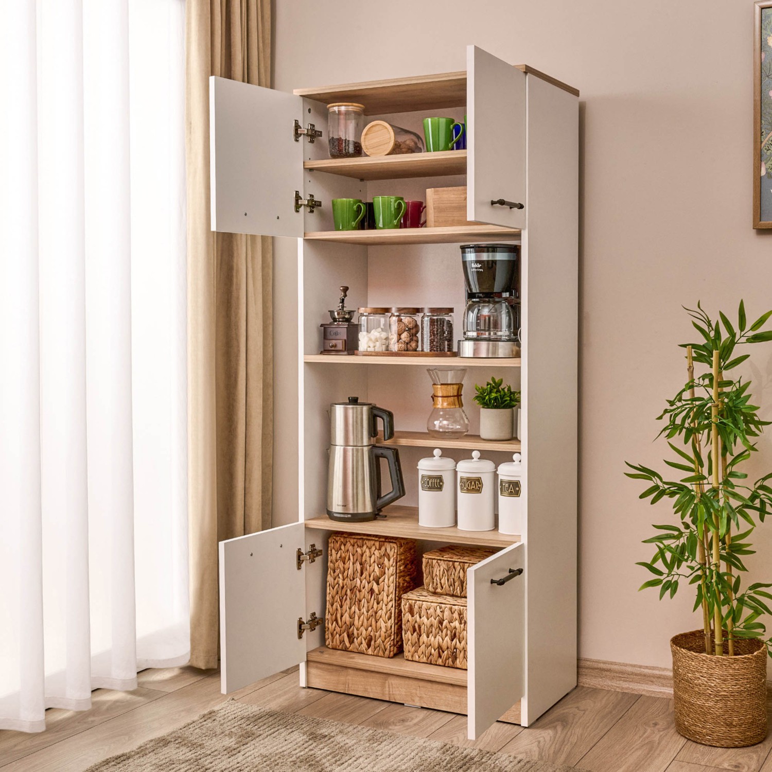 Just Home 4 Kapaklı Fırın Bölmeli Kiler Dolabı – Beyaz / Safir Meşe