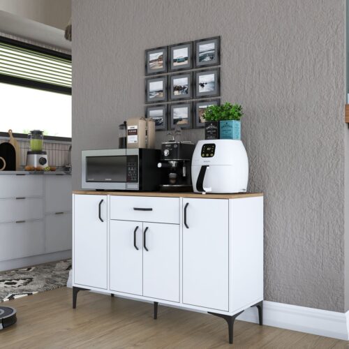 Rani JE136 Kahve Köşesi Çok Amaçlı Dolap 4 Kapaklı 1 Çekmeceli Kiler Mutfak Dolabı Beyaz – Sepet Ceviz