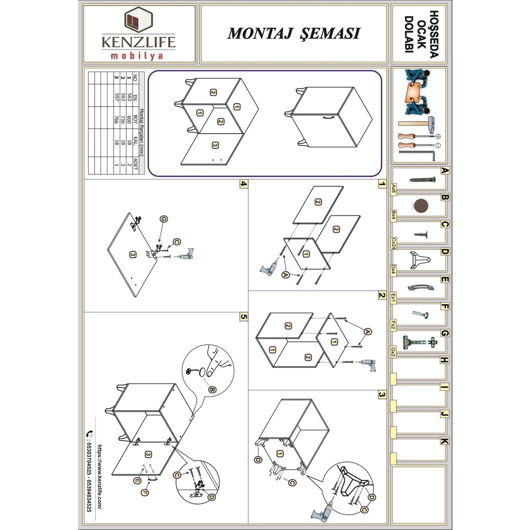 Kenzlife ocak dolabı hoşseda Farklı renkleri mevcuttur. Ahşap malzeme olarak suntalam kullanılmıştır (mdf değildir). Ürünün ebatları dıştan dışa yükseklik 85 cm (8 cm ayak dahil ayak hariç 77 cm) genişlik 60 cm derinlik 56 cm. Ürünün ocak koyma yeri en üst kısmı kapalı sabit tabladır. Üstüne klasik set üstü ocak koyabilirsiniz. Ocak altı rafsız ve kapaklıdır.