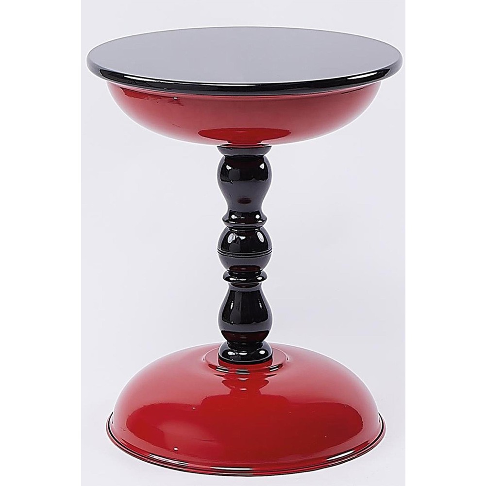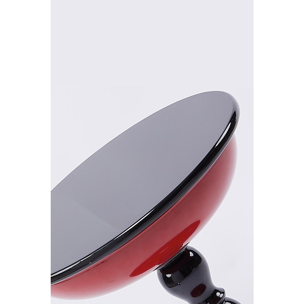 Kırmızı Metal Yan Sehpa – Parlak Kestane Mdf Üst, Şık Dekoratif Tasarım