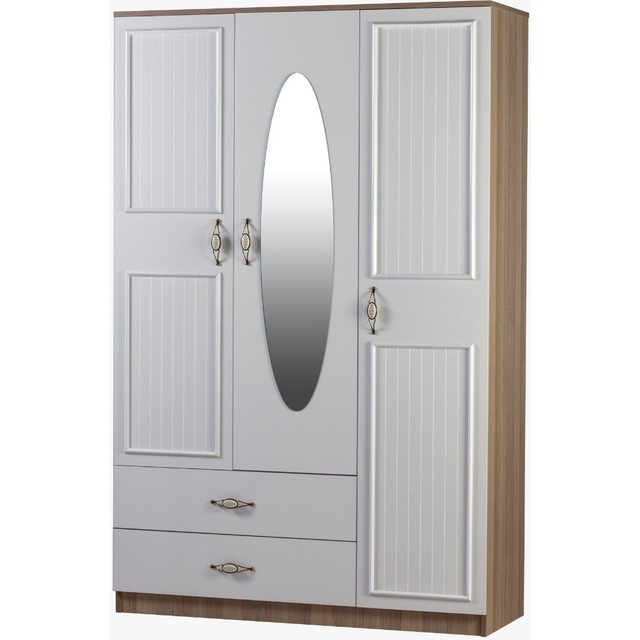 Kums Shop Country Beyaz Ayna Detaylı Çekmece Detaylı 3 Kapaklı Dolap