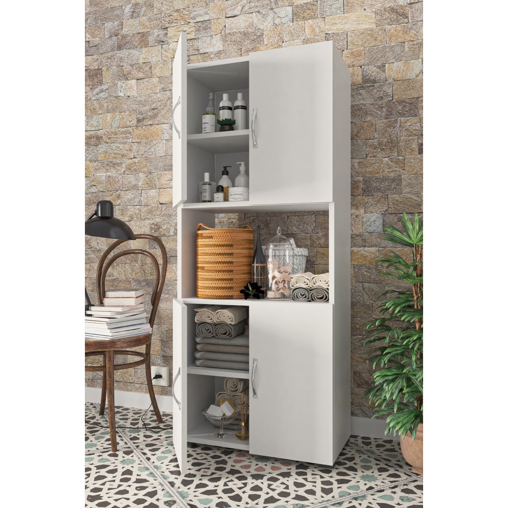 - Geniş dolap ve bölme hacmi ile size alandan kazandırır. Her dekorasyon tipi ile uyum sağlayacak modern bir tasarıma sahiptir. Toplam dört kapaklı bölmeden ve içerisinde bulunan birer raftan oluşmaktadır. Açık orta bölmesi, kapaksız tasarımı ile dilerseniz fırın veya mikrodalga gibi eşyalar için alan olarak kullanılabilir.