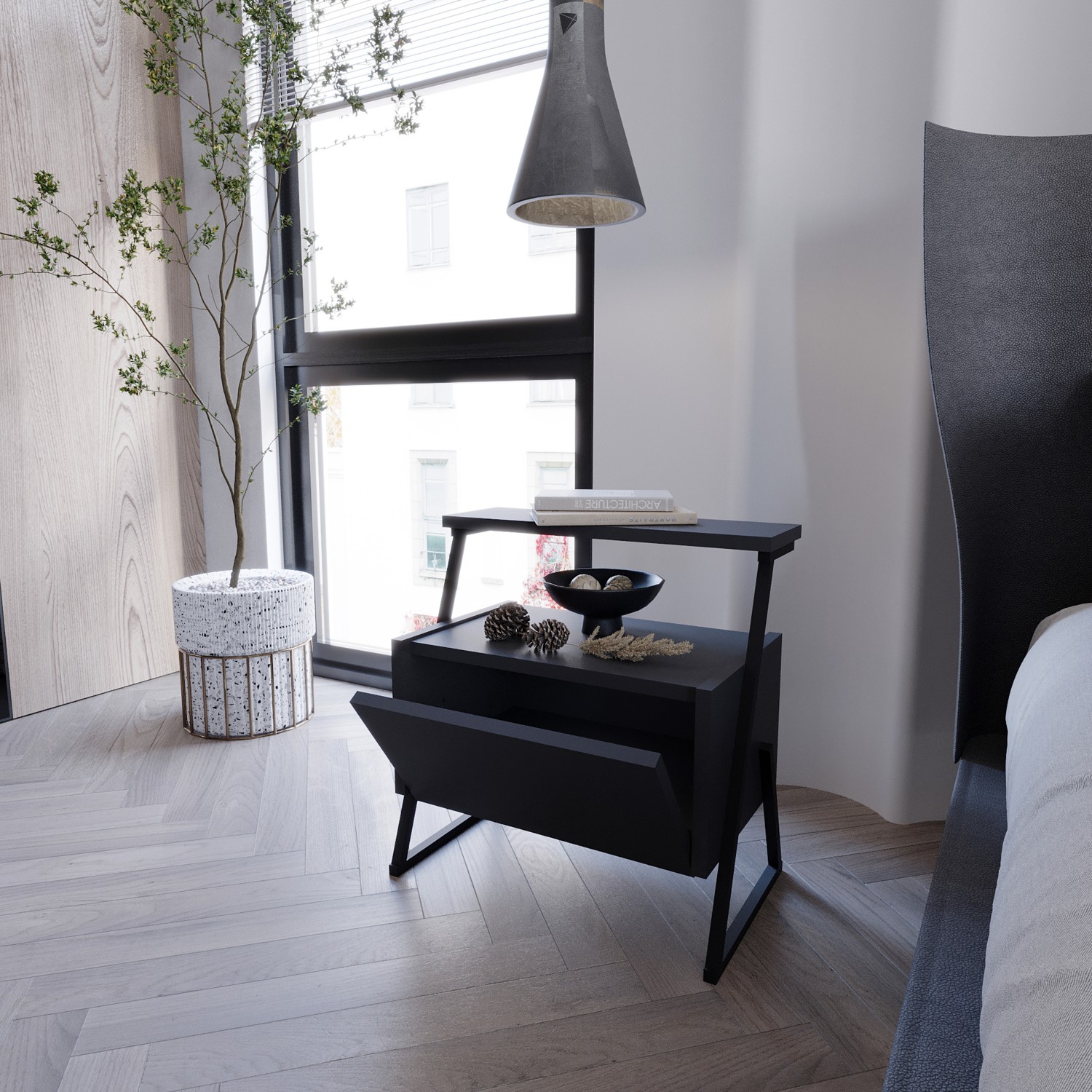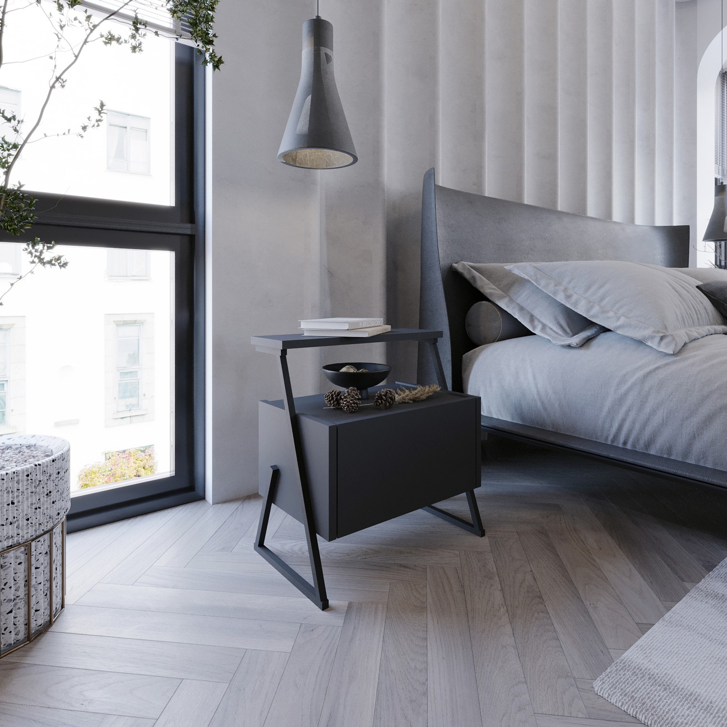 Bütün gövdeyi birleştiren metal ayaklı sağlam yapısı ile uzun kullanım ömrünün yanında dekoratif bir görünüm sunan ZAMAN Komodin işlevsel özellikleri ile beğenilerinize sunuluyor. Düşer kapaklı bölmesini eşyalarınızı gizlemeniz için kullanırken günlük kullanımda size kullanım kolaylığı sunan bir üst rafa da sahip. Yüksek ayak yapısı sayesinde alt kısmı kolayca temizlenebilmekte ve robot süpürgeler alt kısmına girebilmektedir.