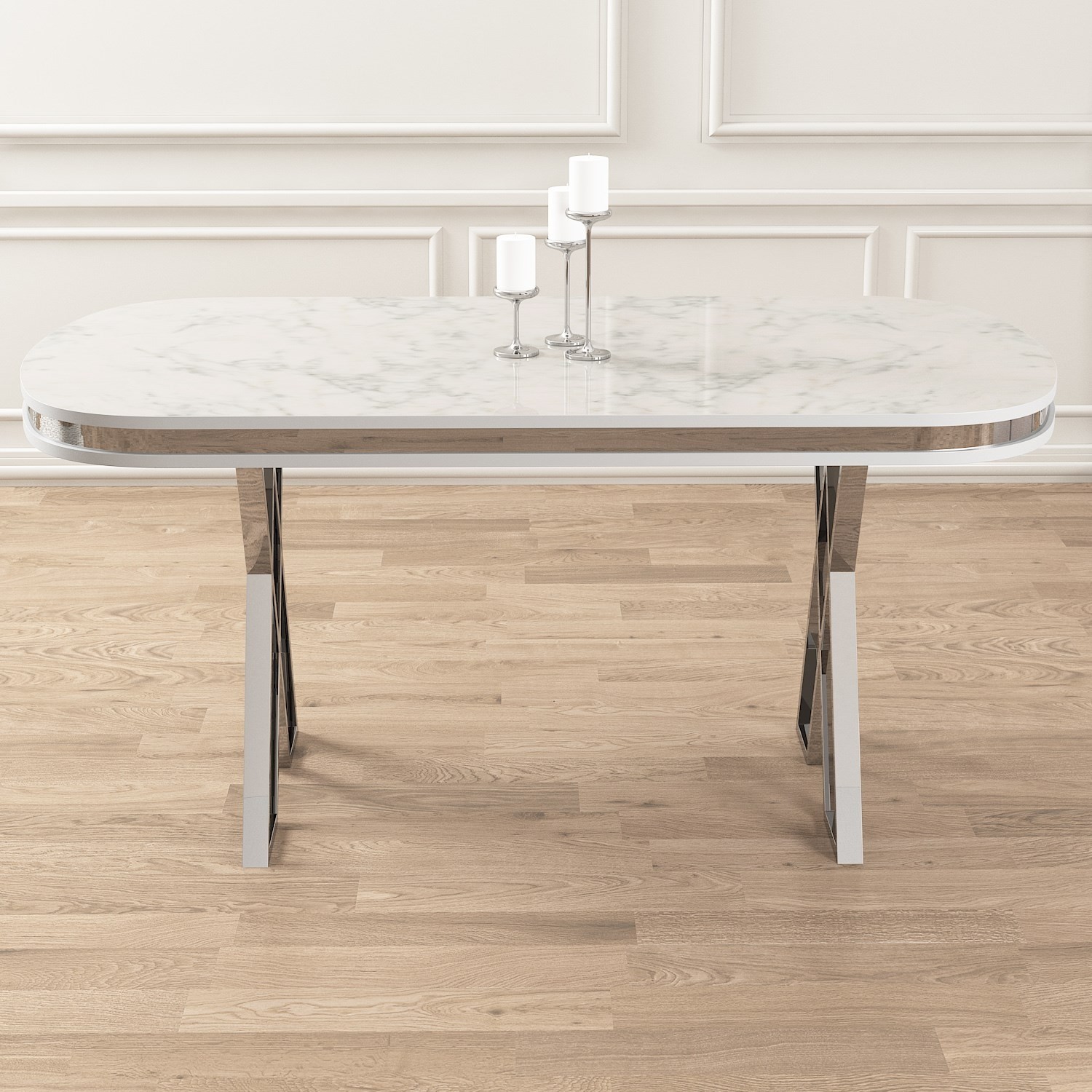 Şık ve modern tasarım: Beyaz mermer desen ve krom ayak kombinasyonu ile estetik bir görünüm.