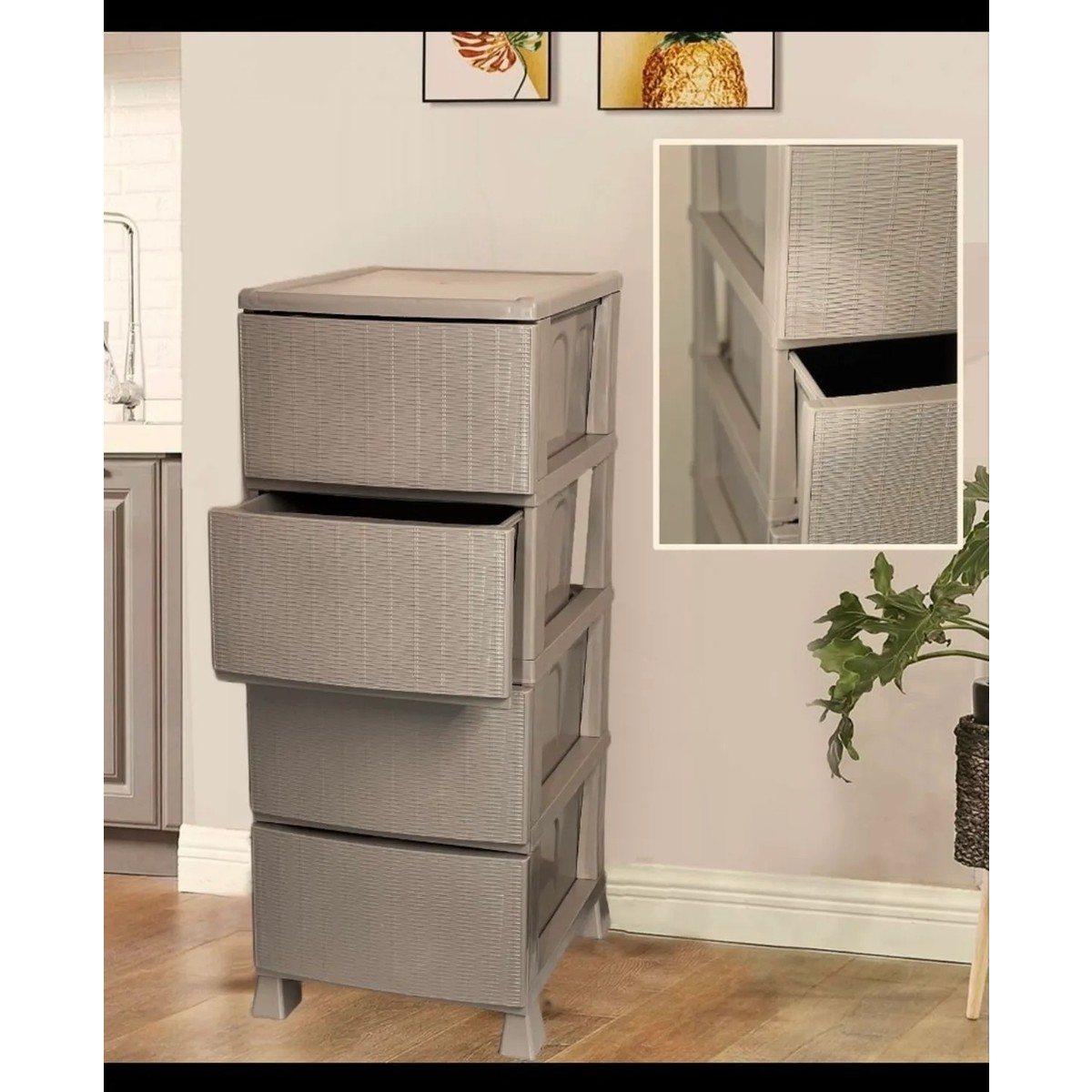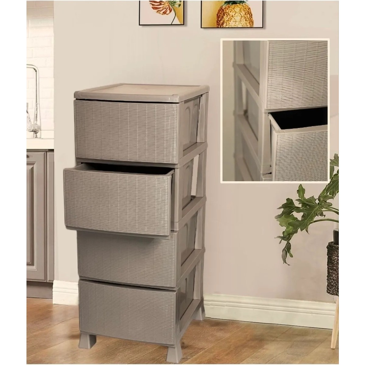 Lees home Leeshome Büyük Boy Krem Hasır Kapaklı 4 Plastik 4 Çekmeceli Komidin Sebzelik Şifonyer için 2 değerlendirme