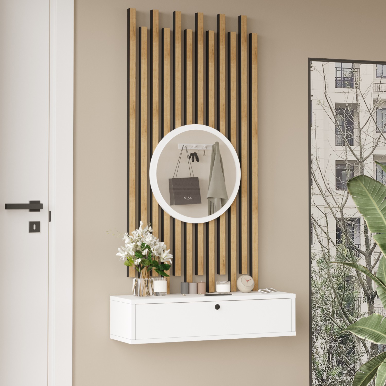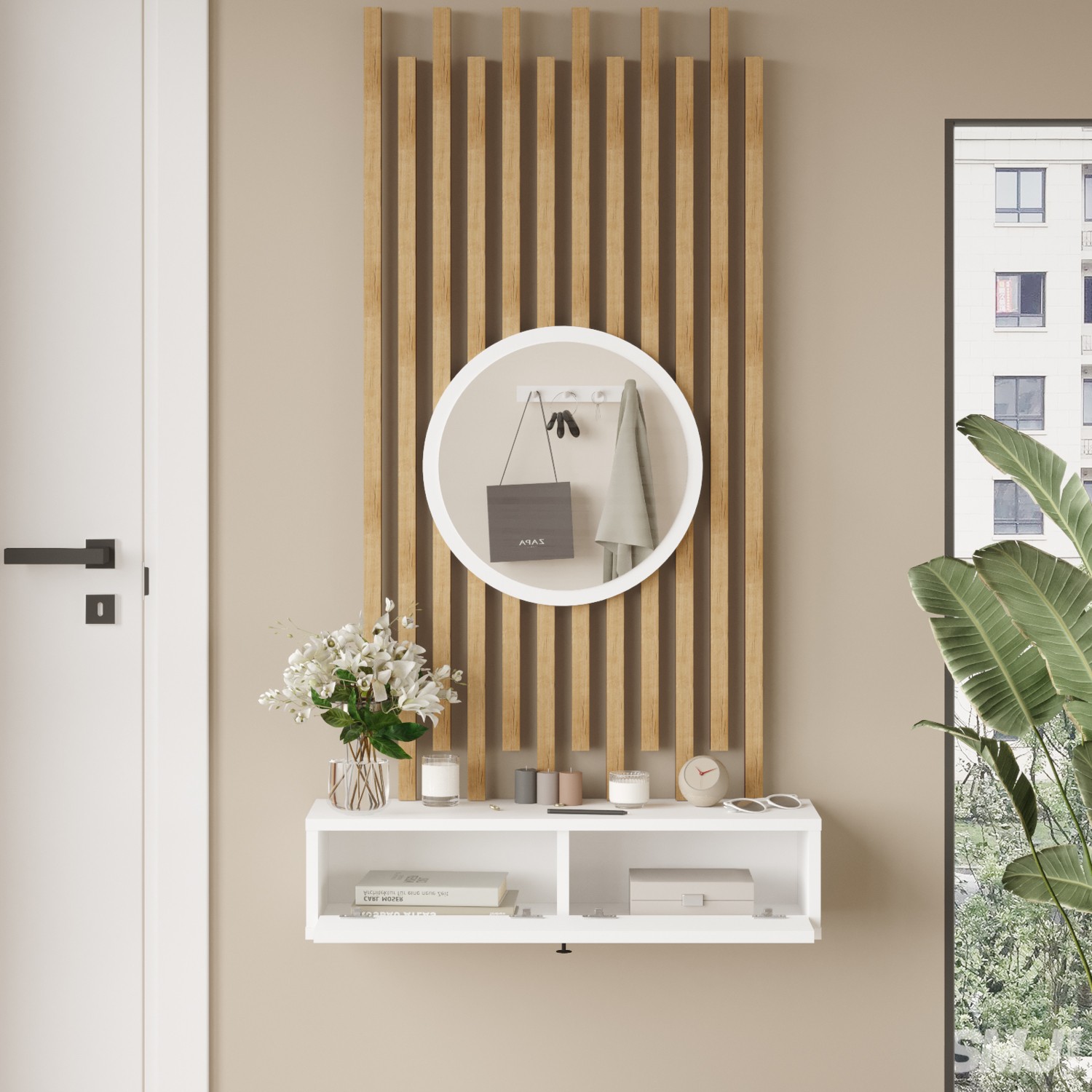 L’occi Concept Cosmia Aynalı Dresuar Ahşap Çıtalı Set Hol Antre CS4-W
