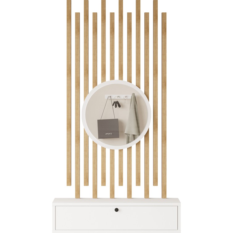 L’occi Concept Cosmia Aynalı Dresuar Ahşap Çıtalı Set Hol Antre Cs4-W