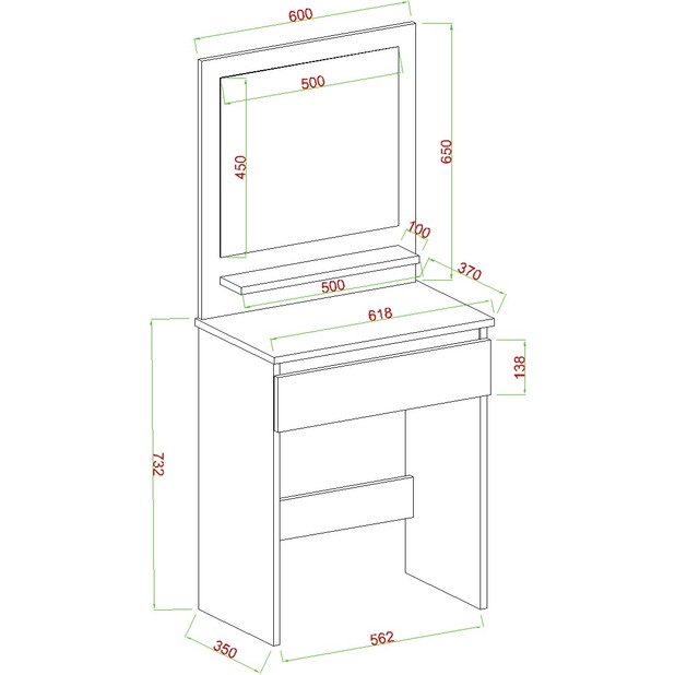 •  Ölçü Bilgisi: Masa Genişlik: 61,8  cm, Masa Yüksekliği: 73,2 cm,  Masa Derinliği: 37 cm’dir.