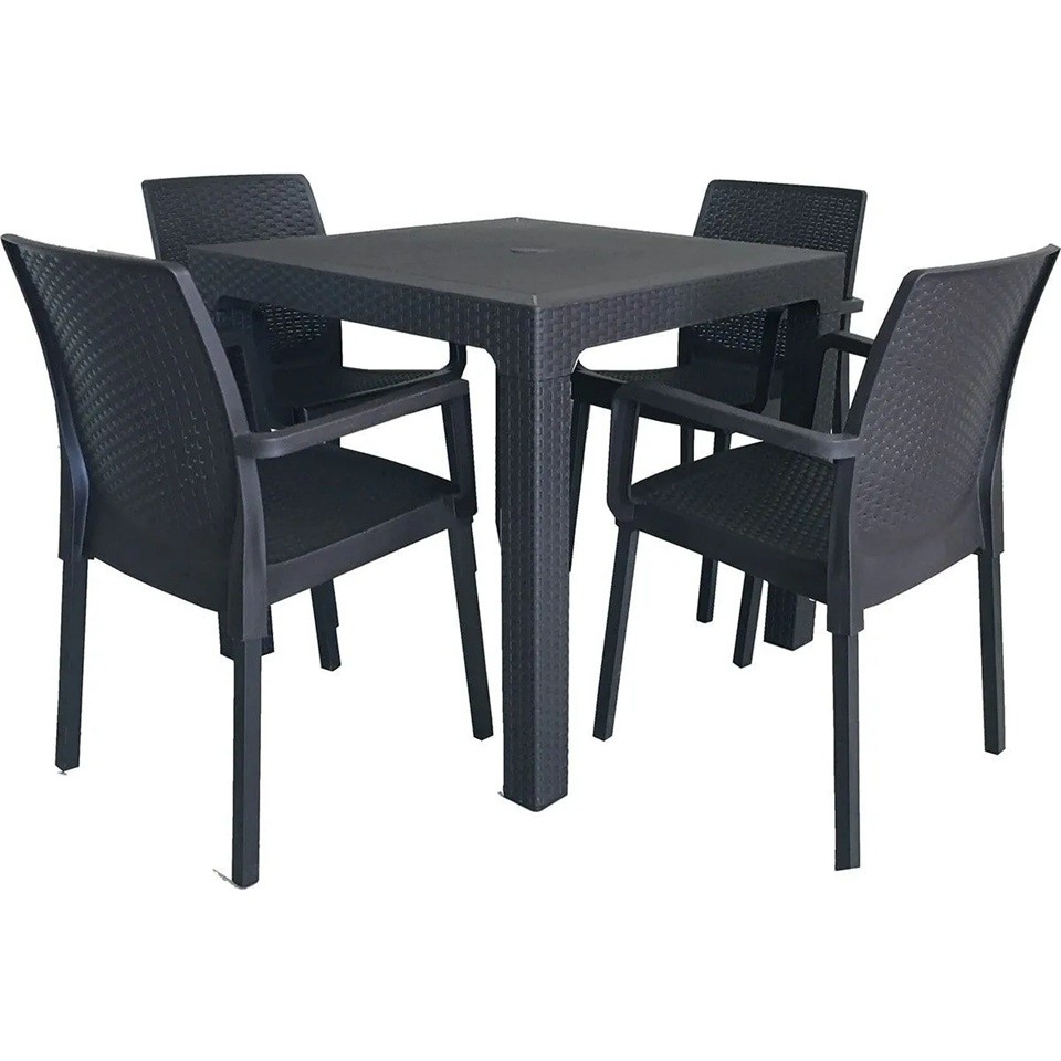 MANDELLA 80 x 80 4 KİŞİLİK ANTRASİT PLASTİK BAHÇE MOBİLYASI MUTFAK BALKON TAKIMI