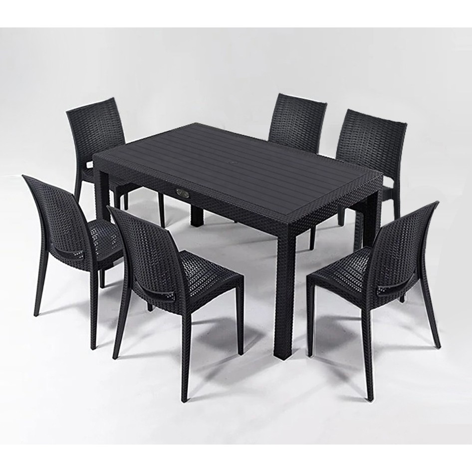 Mandella 90 x 150 6 Kişilik Antrasit Plastik Bahçe Mobilyası Mutfak Balkon Takımı
