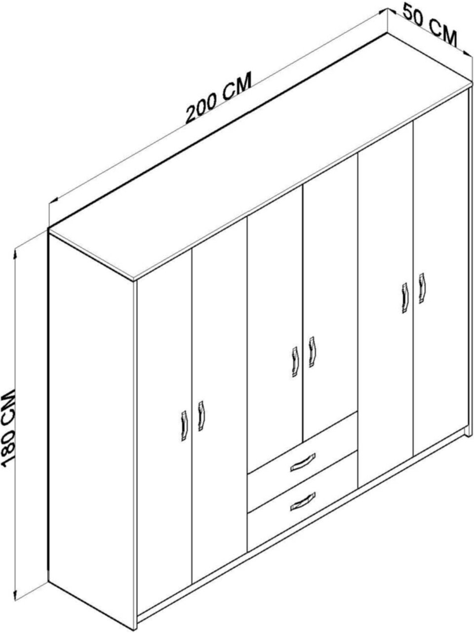 ÖLÇÜLER YÜKSEKLİK: 180 cm GENİŞLİK: 200 cm DERİNLİK: 50 cm RENK: BEYAZ SUNTA KALINLIĞI : 18 mm