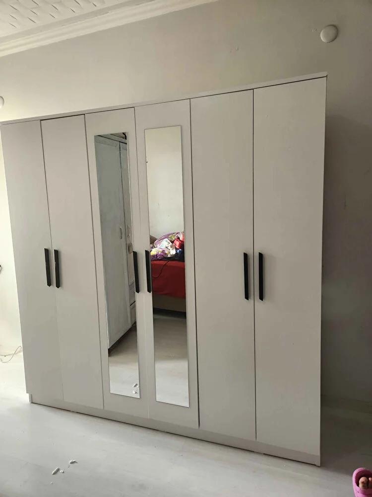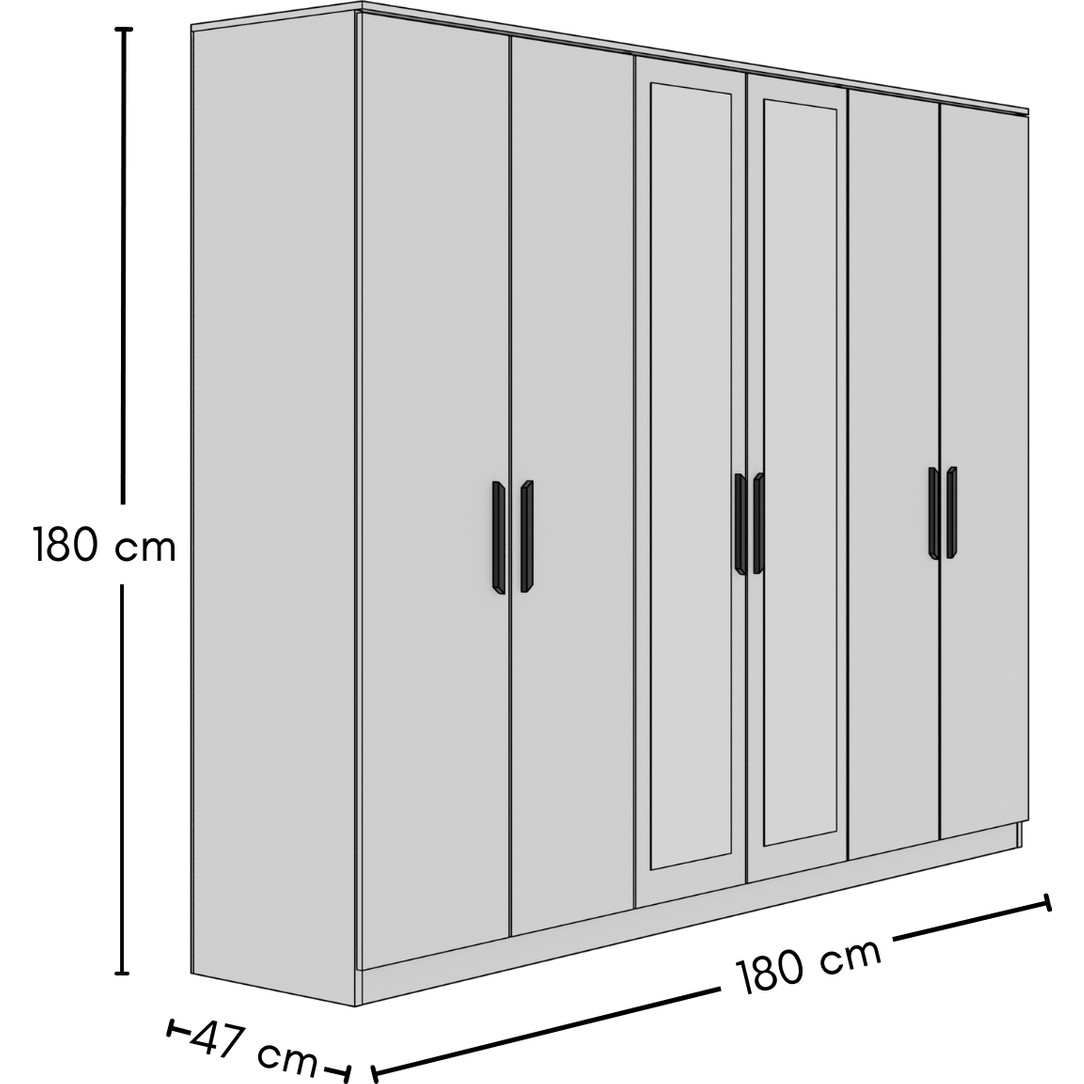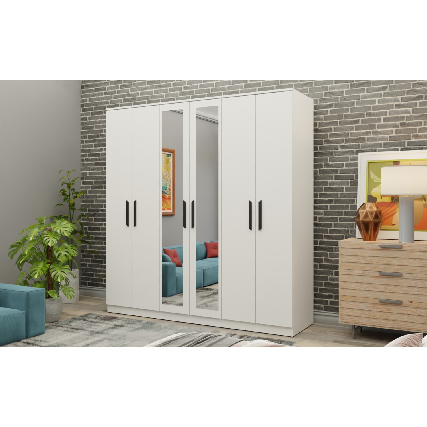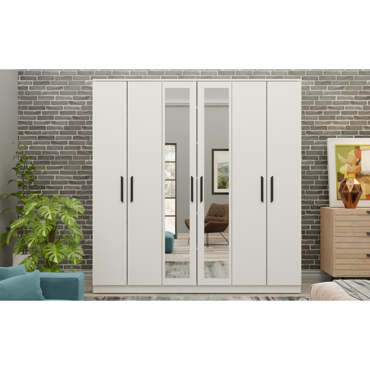 Metalia Gm 081 Favorite 6 Kapılı Aynalı Beyaz Siyah Kulplu Gardırop