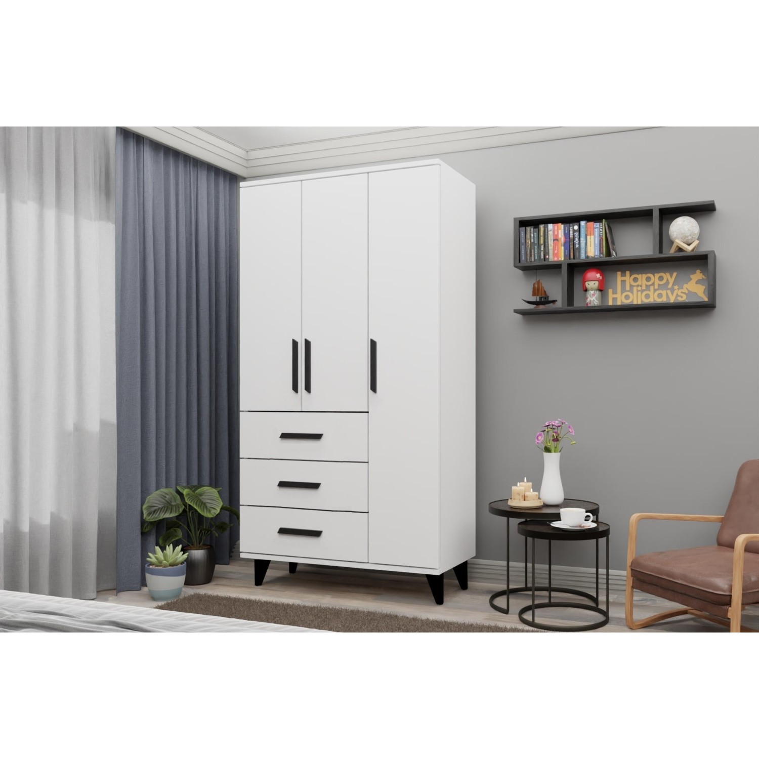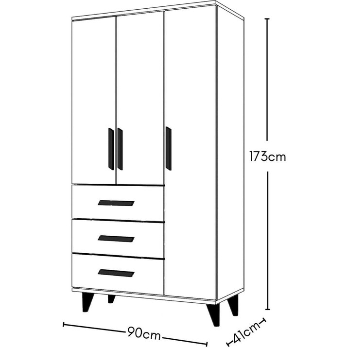 Metalia Gm 303-A Ece 3 Kapı 3 Çekmeceli Ayaklı Siyah Kulplu Gardırop