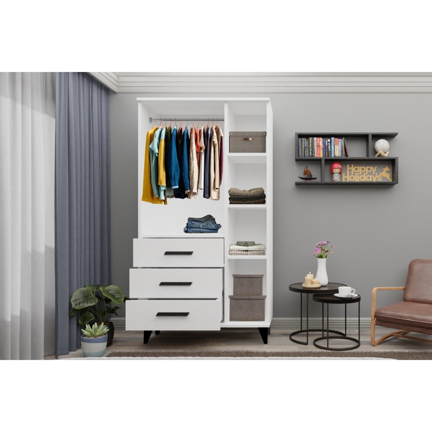 Yüksekliği ve genişliği ile dar alanlarda bile maksimum depolama çözümü sunan bu gardırop, günlük yaşamınızı kolaylaştıracak detaylarla donatılmıştır. Askı bölmesi sayesinde elbiseleriniz kırışmadan saklanırken, dört adet rafı sayesinde farklı boyutlardaki eşyalarınızı rahatlıkla yerleştirebilirsiniz.