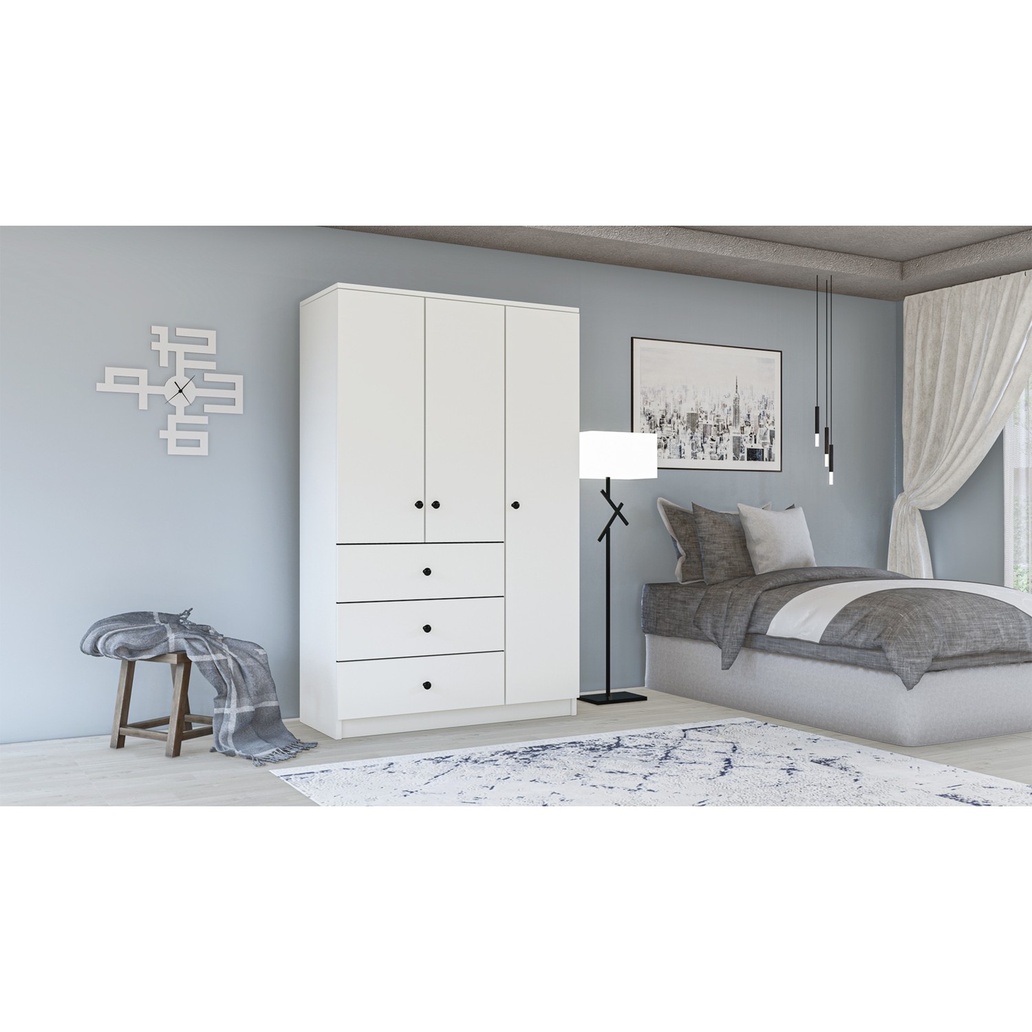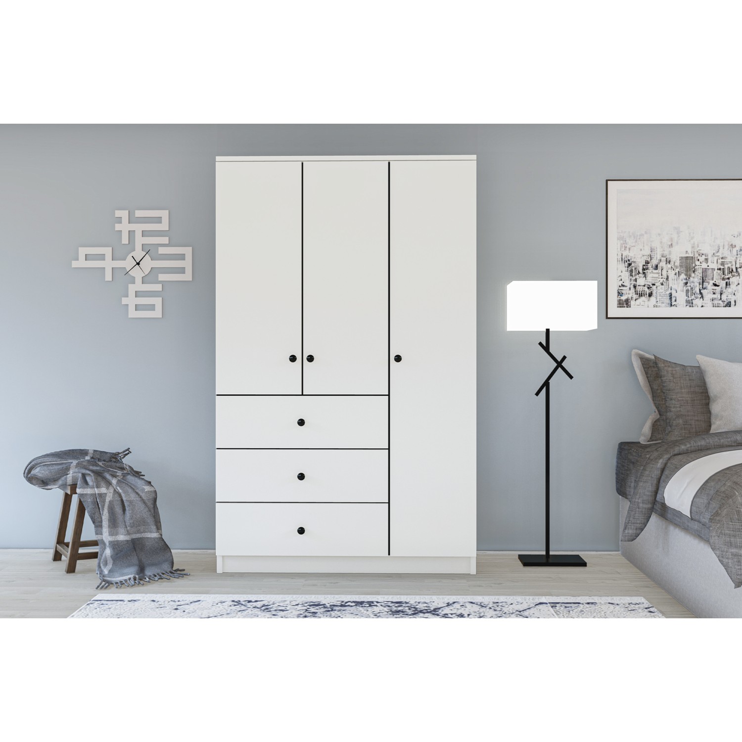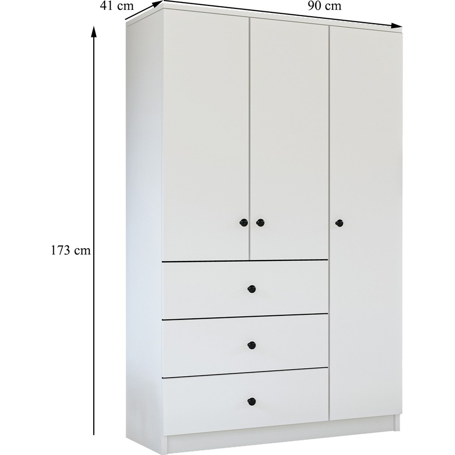 Metalia Gm 177 Modena 3 Kapı 2 Çekmeceli Aynalı Siyah Kulplu Beyaz Gardırop