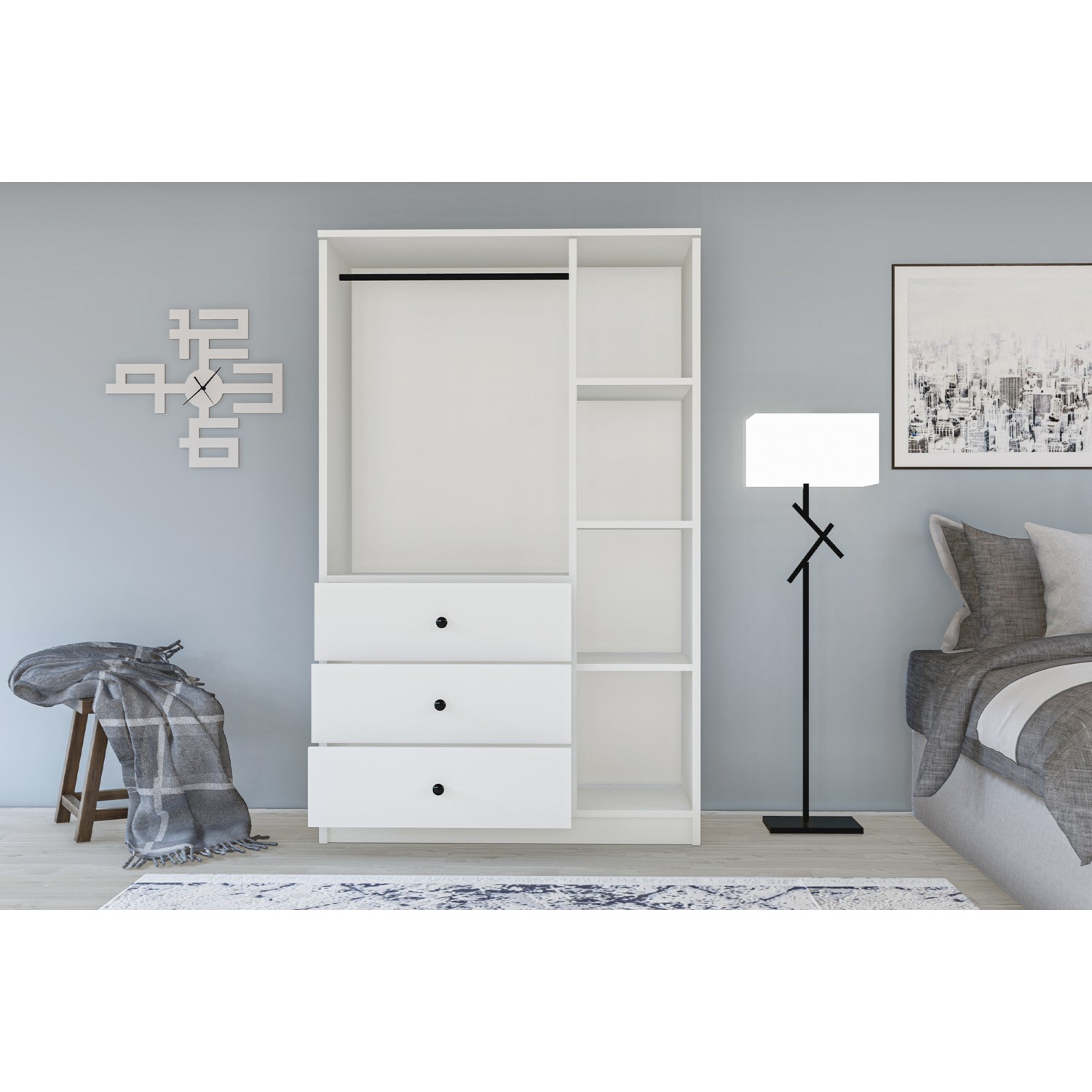 Aeka AE-1059 Milano Beyaz 4 Kapaklı Gardırop 11 Raflı 2 Askılıklı
