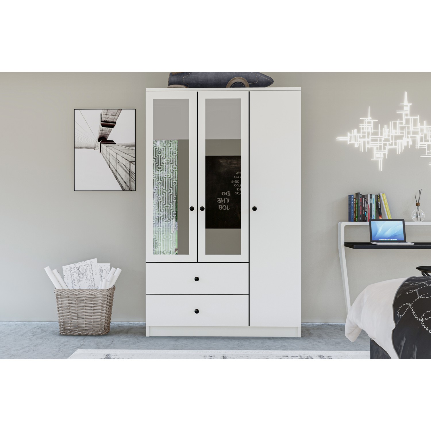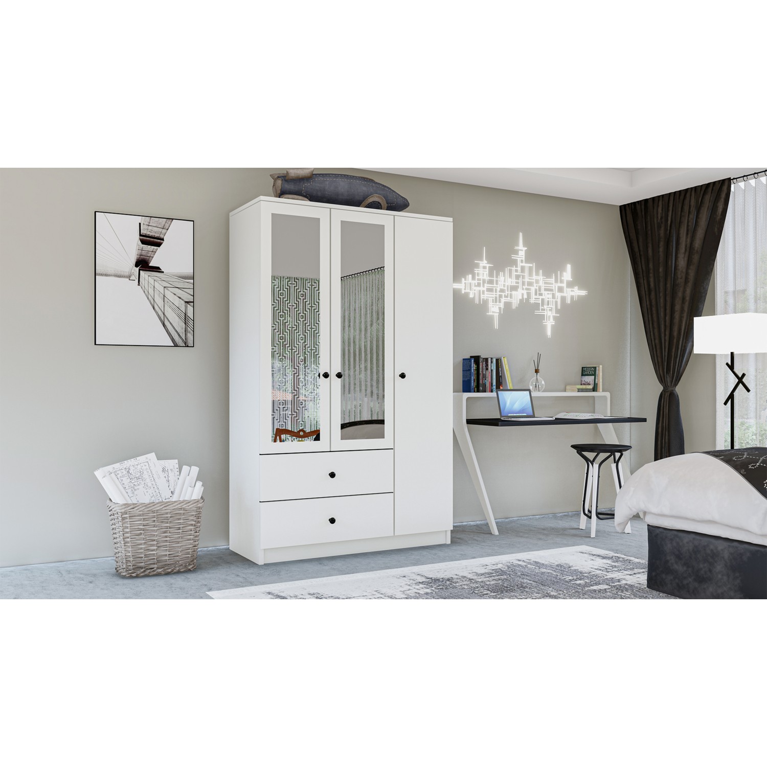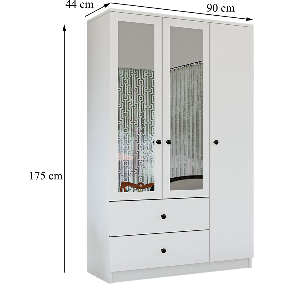 - Üç Kapılı ve İki Çekmeceli: Geniş iç hacmi ile tüm giysilerinizi düzenli bir şekilde saklayabilirsiniz.