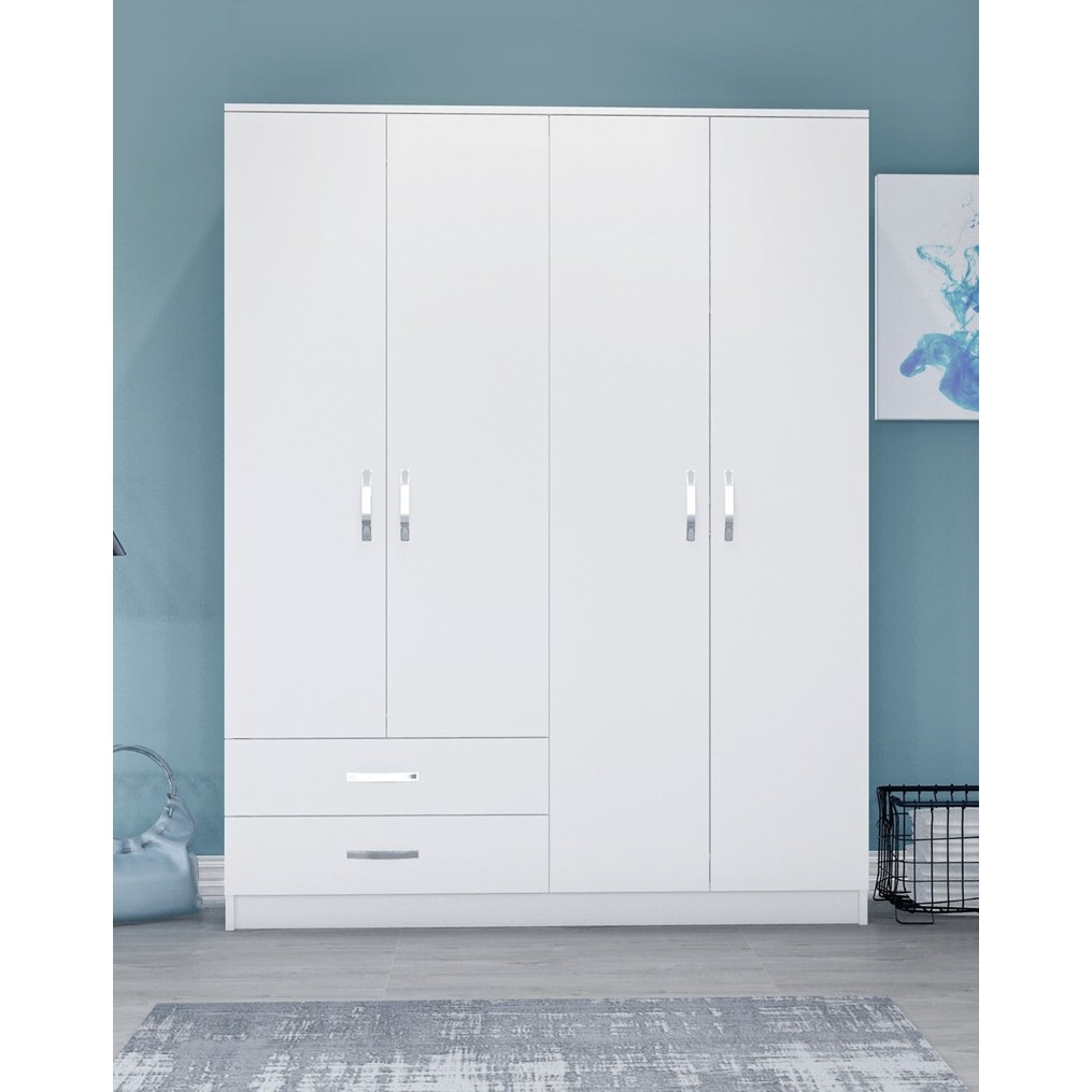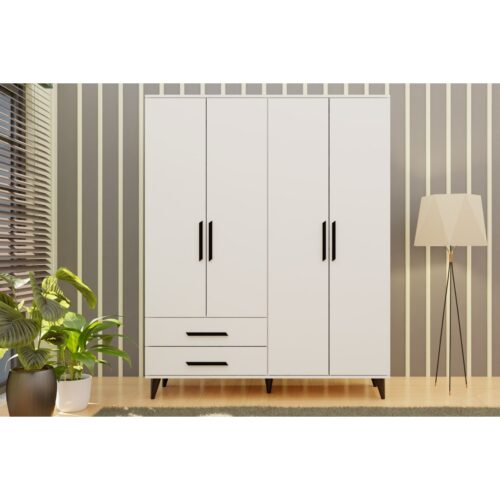 Novado 4 Kapaklı 2 Çekmeceli Gardırop – Beyaz