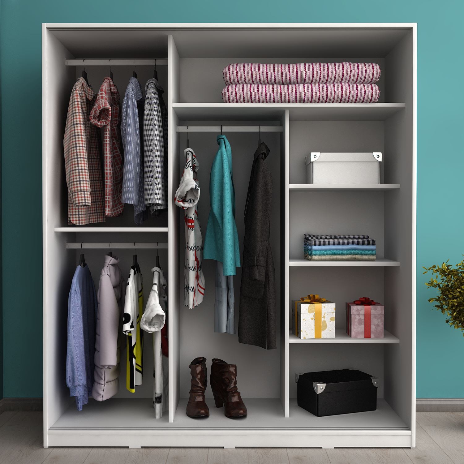 Derin ve kullanışlı iç mekan sayesinde elbiselerinizi kırıştırmadan ve sıkıştırmadan dayanıklı çelik askılığa asabilir, raf bölümüne eşyalarınızı koyabilir, alt bölüme çanta bavul, ayakkabılarınızı rahatlıkla koyabilirsiniz.