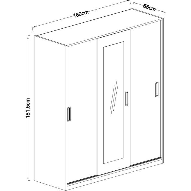- 3 kapılı gardırop, sürgü kapı özelliği sayesinde dar alanlarda pratik bir kullanım imkanı sunar. Gardırobun ayna özelliği taşıyan kapağı, alandan tasarruf etmenize ekstra katkıda bulunur.