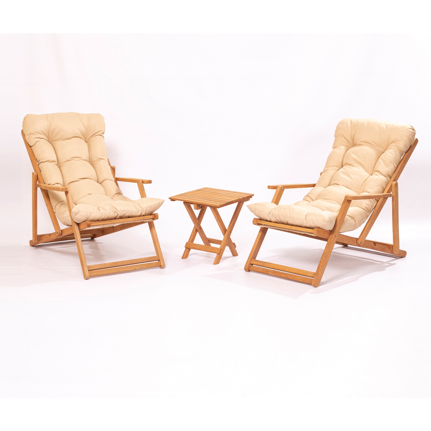 Meya Dekor Simona Grand Şezlong 2+1 Ahşap Bahçe Balkon Teras Mobilyası Katlanır Şezlong Masa Seti
