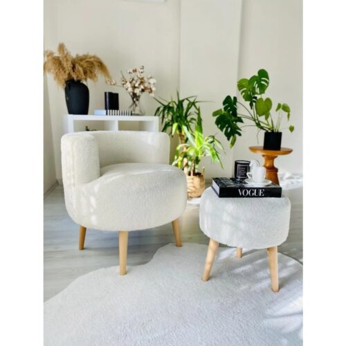 Beylerbeyi Sallanan Ahşap Ayaklı Kırık Beyaz Rengi Berjer Koltuk – Puf Hediyeli
