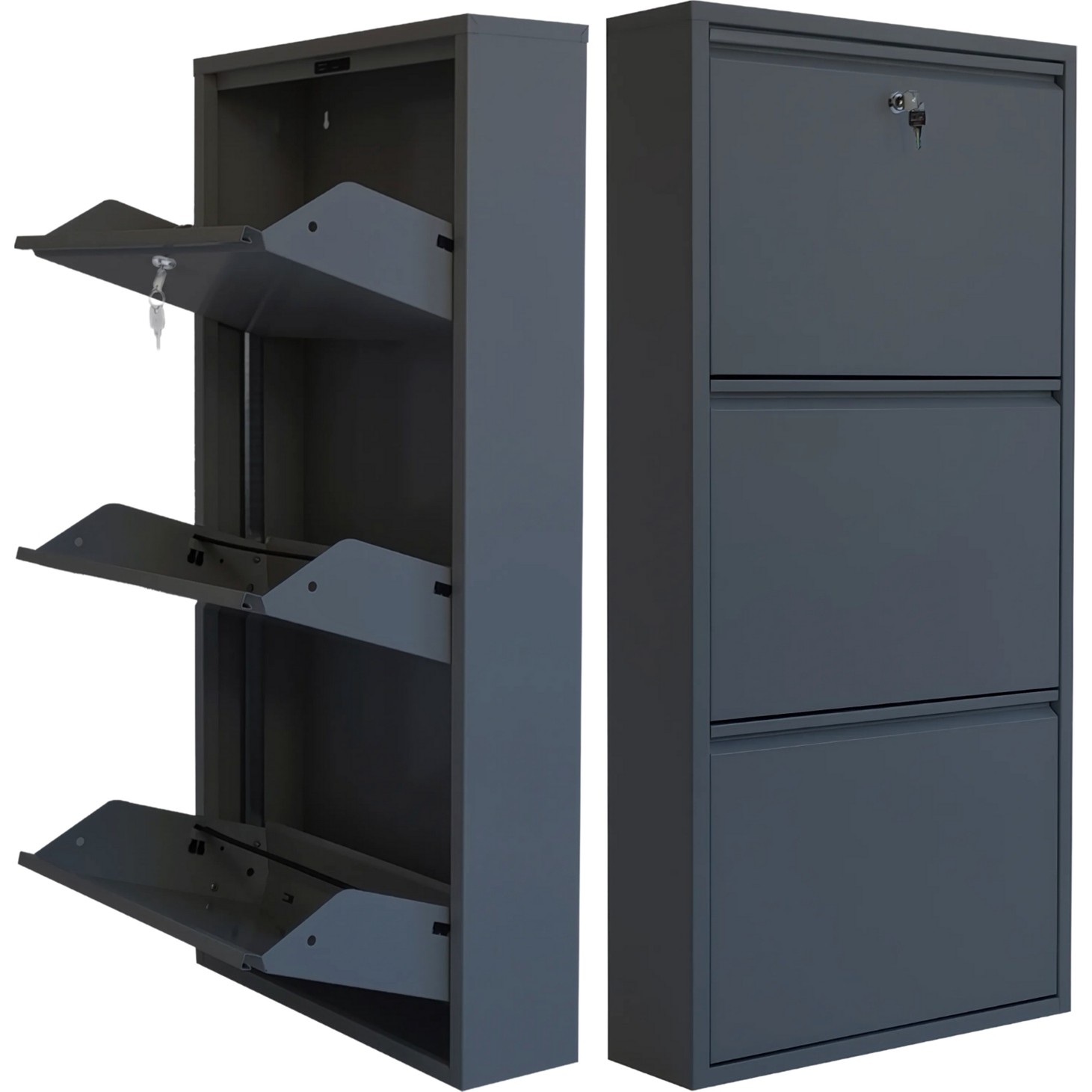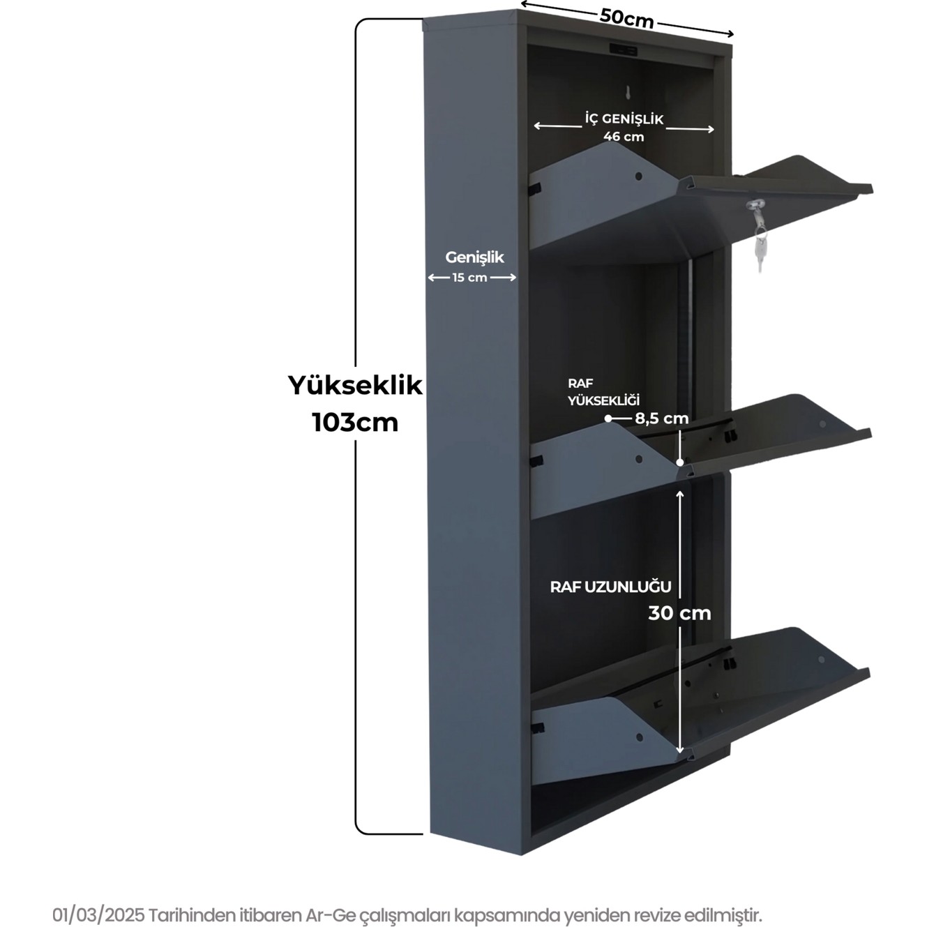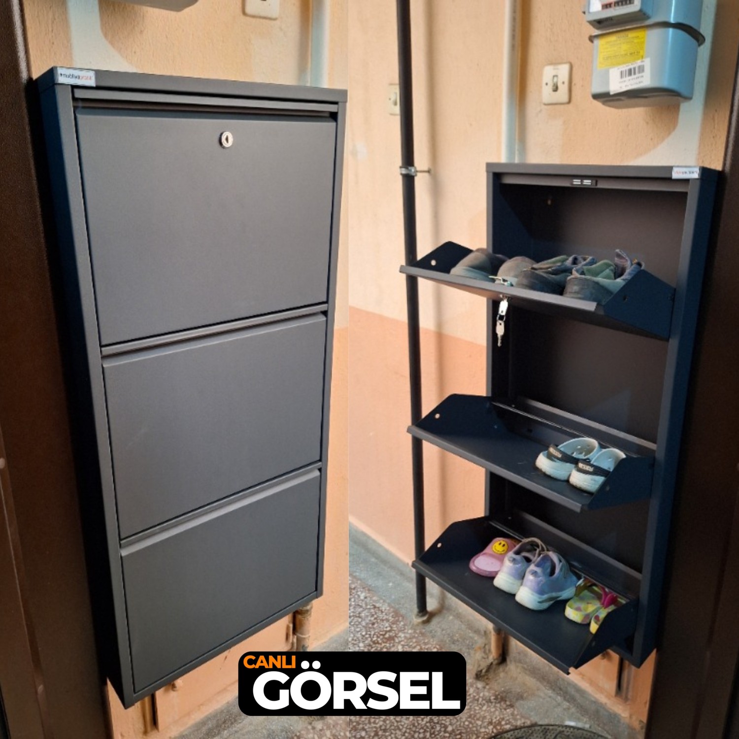 Mobilya Pratik Kilitli 3’lü Metal Ayakkabılık 👞🔒