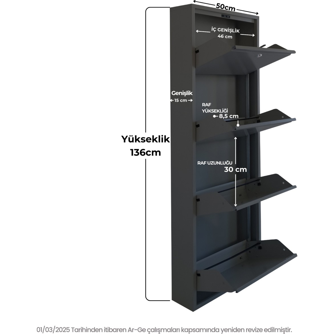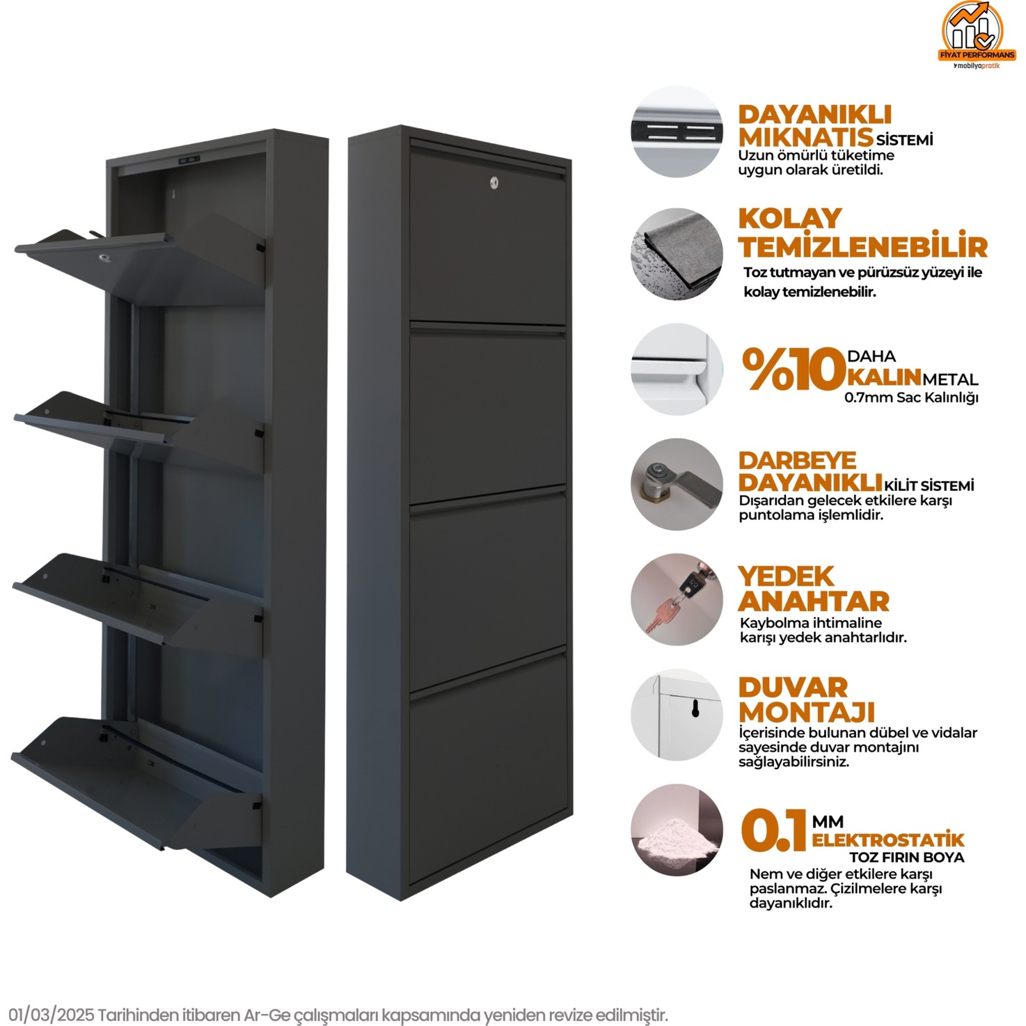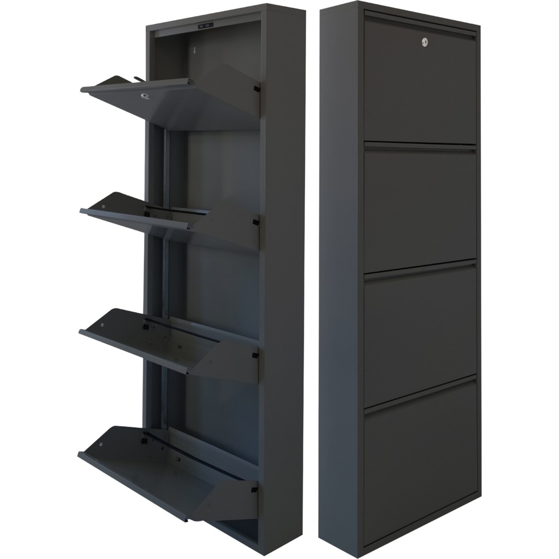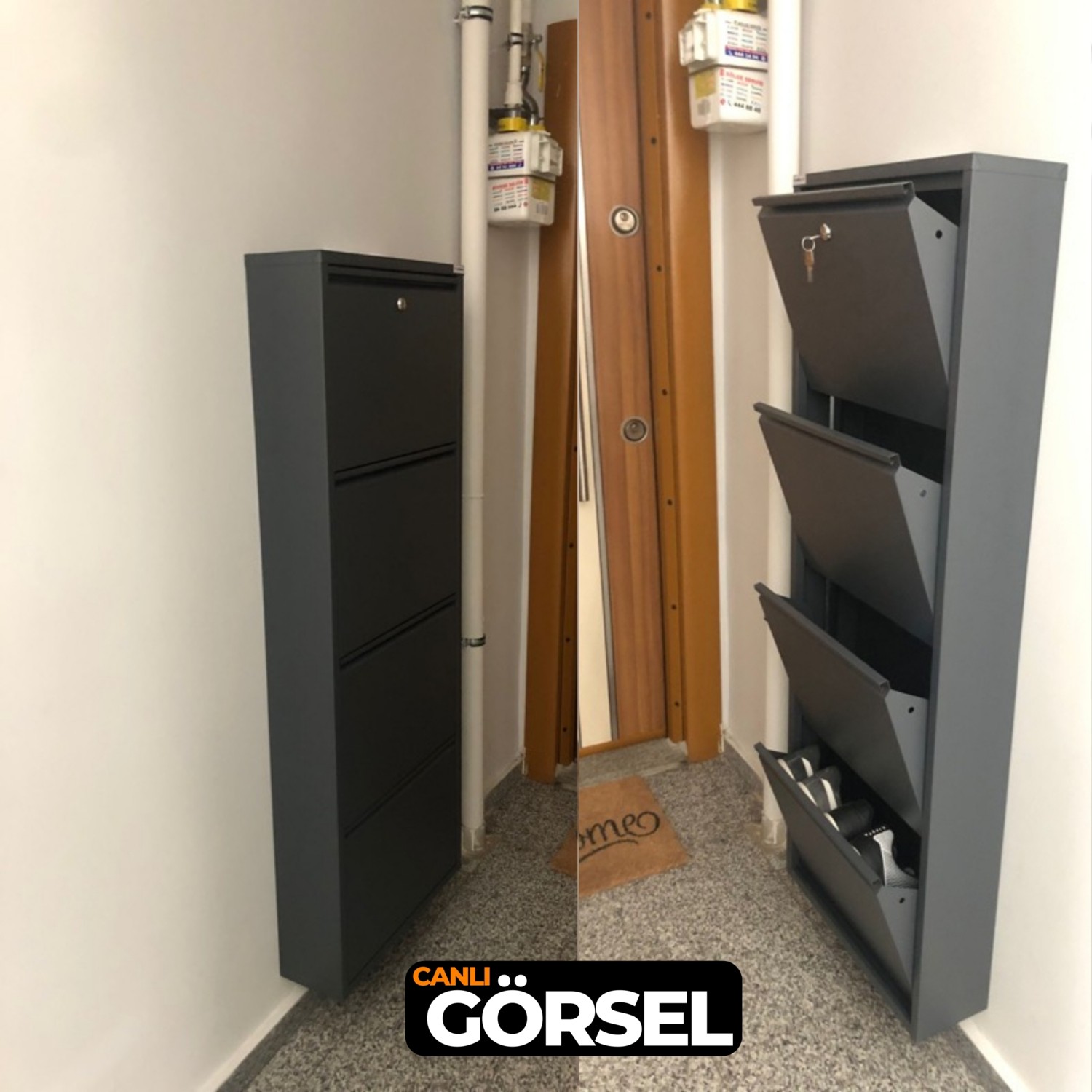Mobilya Pratik Kilitli 4’lü Metal Ayakkabılık – Antrasit