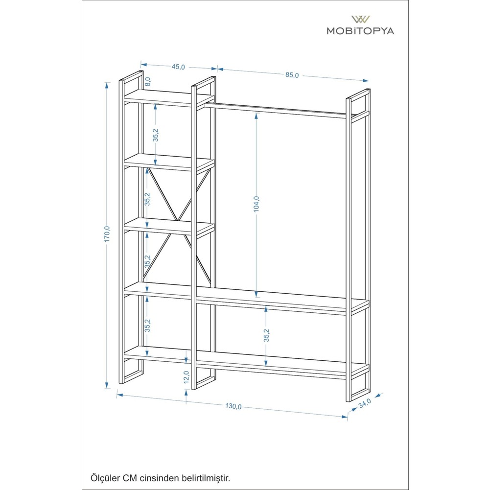 Mobitopya B.d Nilamu Elbise Dolabı / Metal Aksamlı / Atlantik Çam/ Açık Dolap / Organizer / Askılık