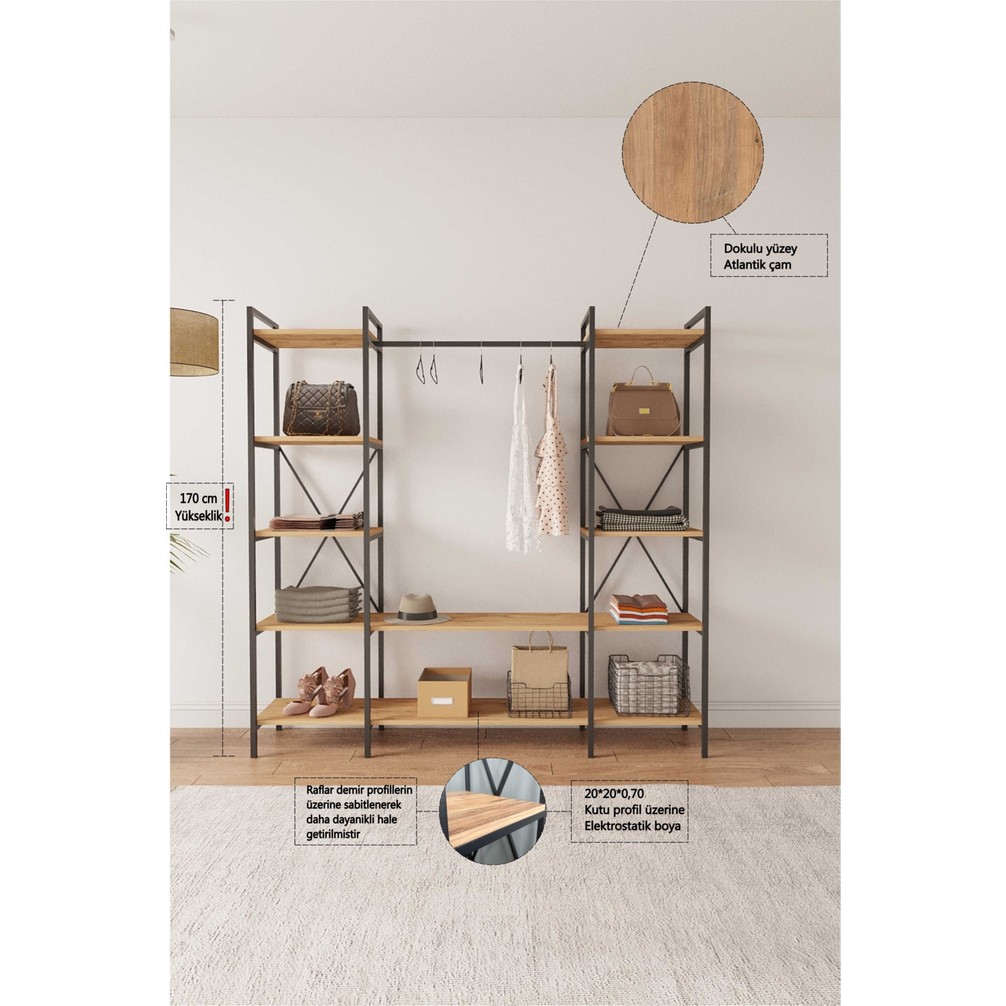 Mobitopya Nilamu Elbise Dolabı / Metal Aksamlı / Atlantik Çam / Açık Dolap / Organizer / Askılık