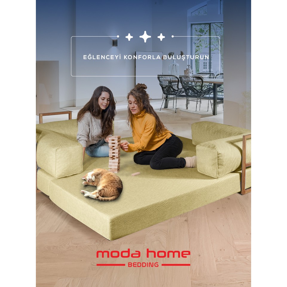 canlı, enerjik ve dikkat çekici bir görünüm arayanlar için moda home bedding retro yataklı kanepe’nin sarı renk seçeneği, yaşam alanlarınıza sıcaklık ve dinamizm katıyor. Yatak olabilen özelliği sayesinde hem şık bir oturma alanı hem de fonksiyonel bir yatak görevi gören bu ürün; çocuklar için de legom aktivite koltuğu olarak keyifli bir kullanım sunuyor.