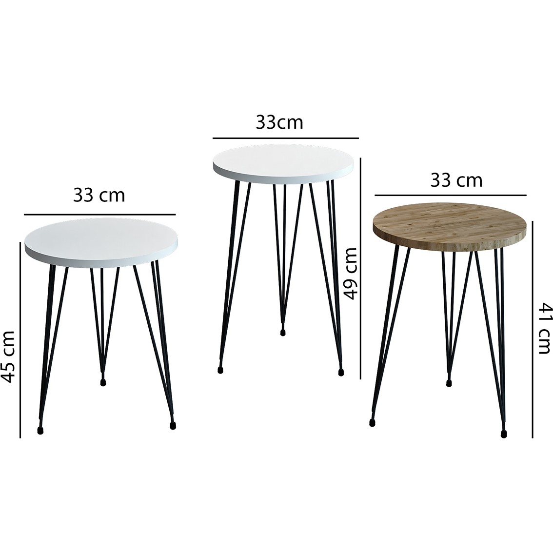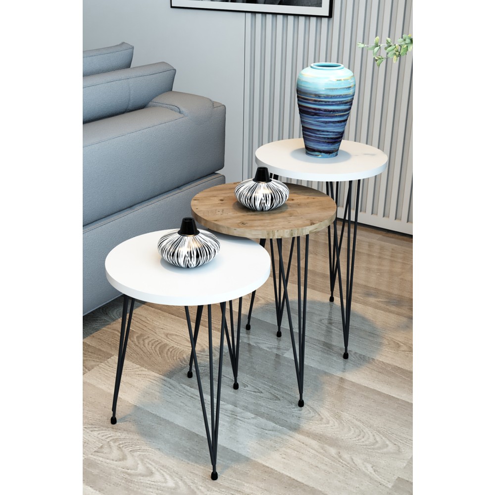 Modalanka 3’lü Zigon Sehpa ve Orta Sehpa Set Yuvarlak Sehpa Seti Tel Ayak Sehpa Set