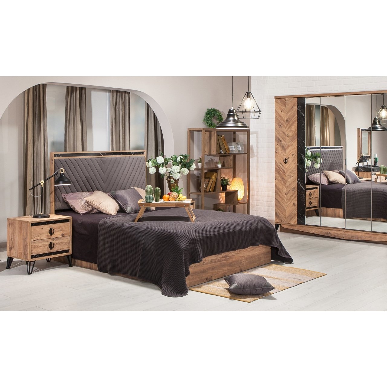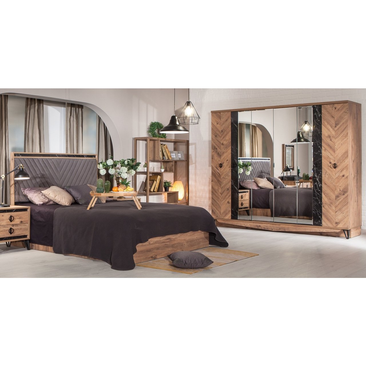 • Avrupa yatak odası takımı, gardırop, şifonyer, başlık ve 2 adet komodin’den oluşmaktadır. Karyola fiyatlarımıza dahil değildir.