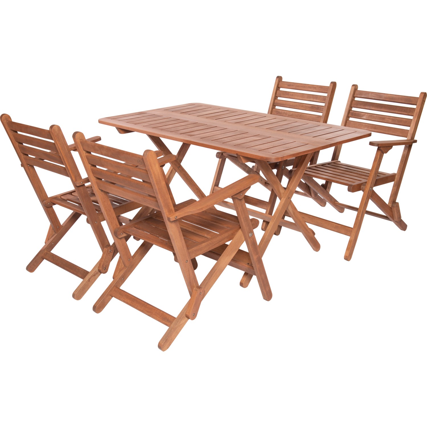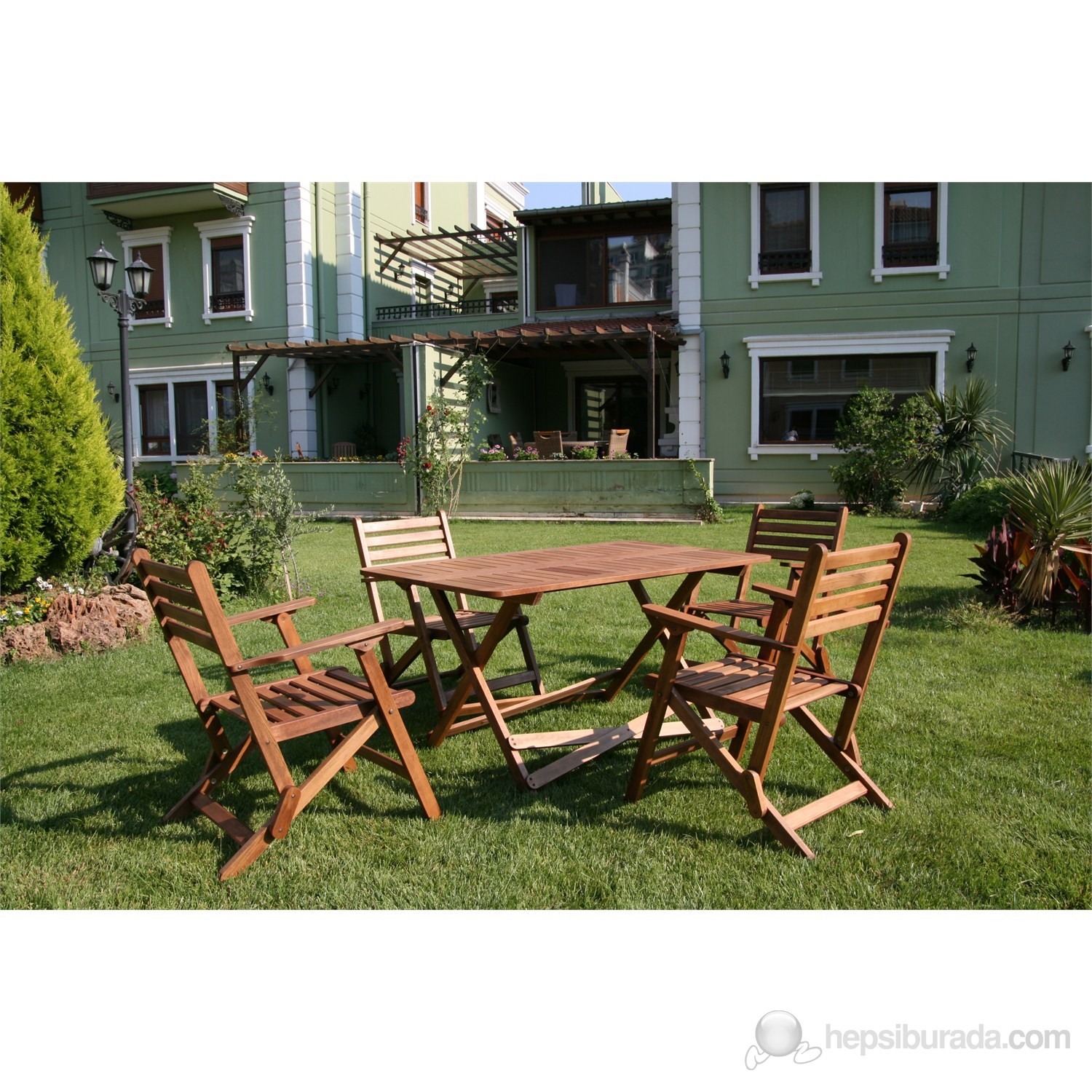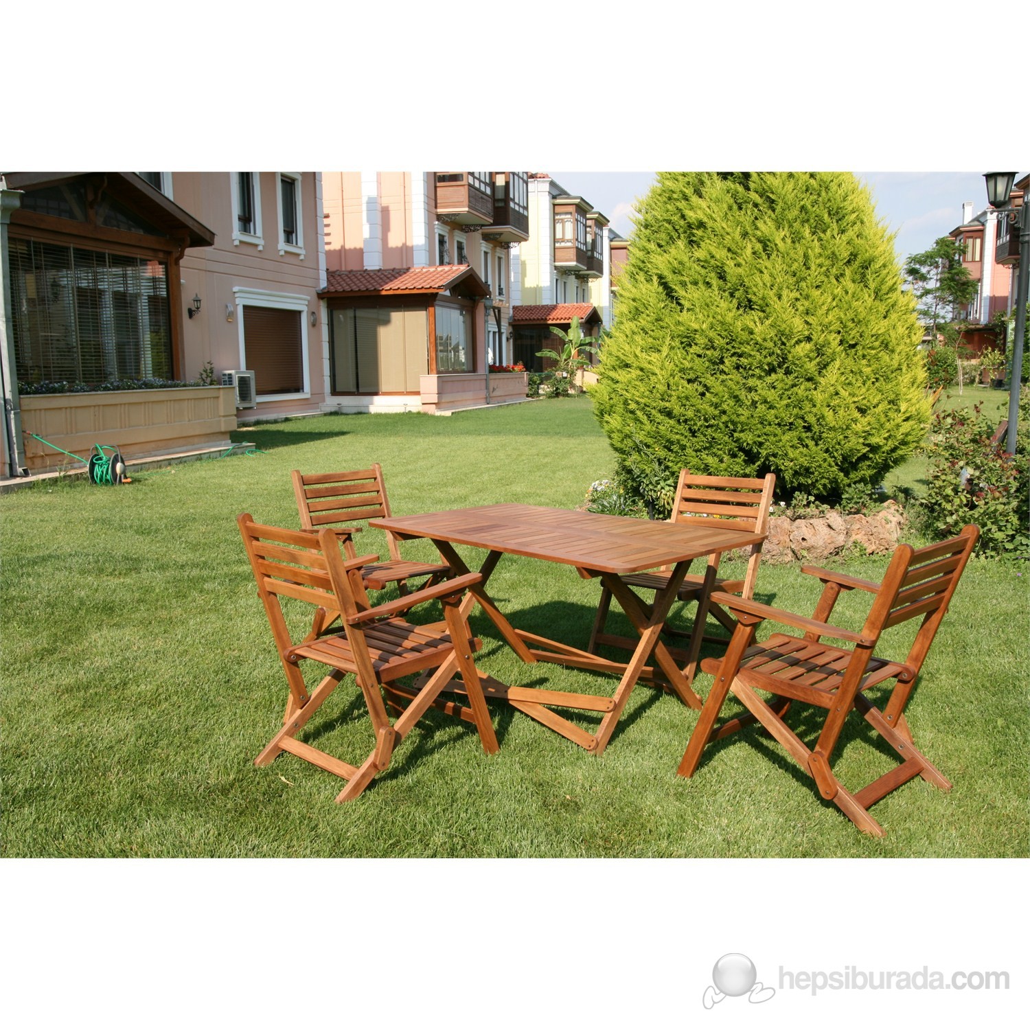 Modermo Ahşap Katlanır Masa (107) + 4 Adet Ahşap Katlanır Koltuk (104)