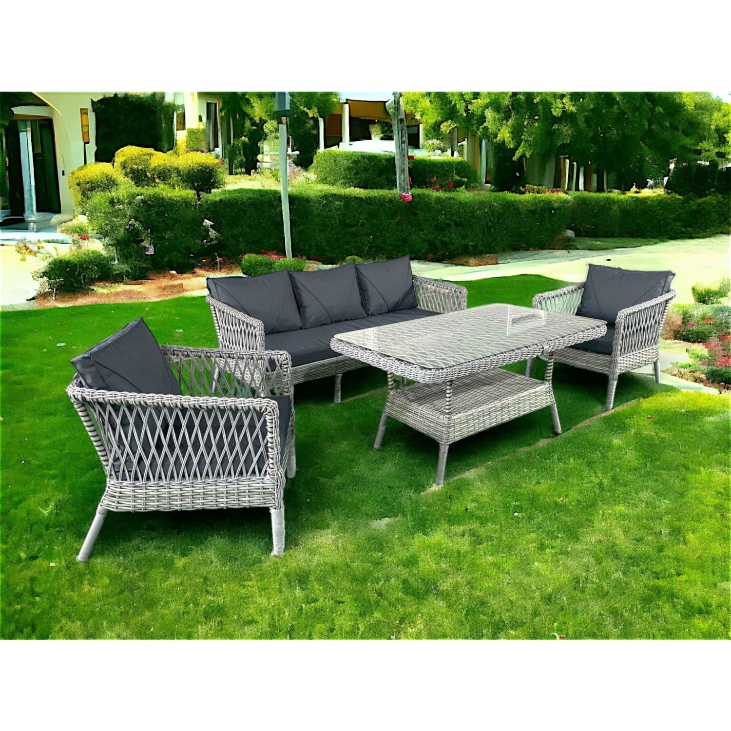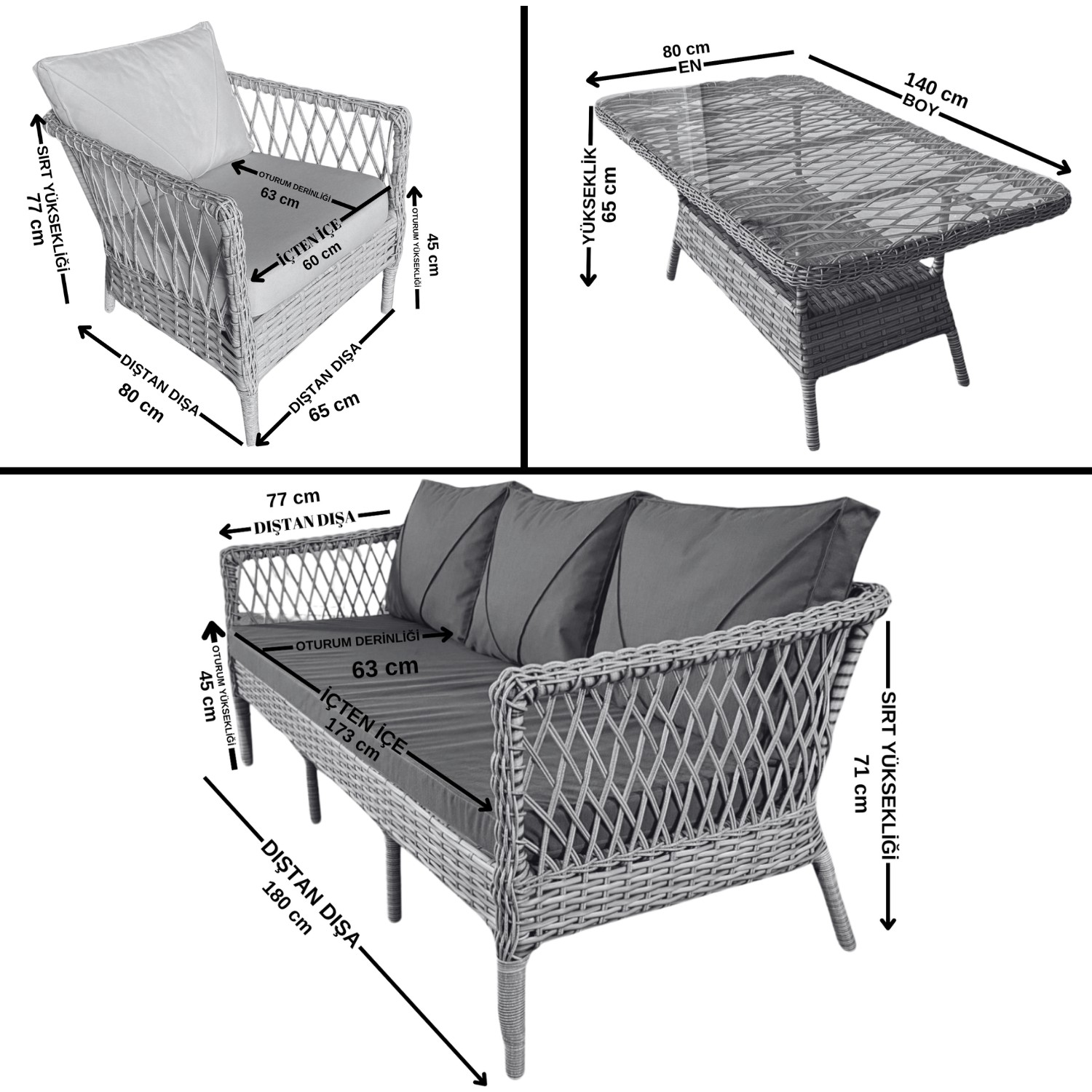 Monalin Home Garden I Loft 5’Li Oturma Takımı (Gri) I Rattan El Örgüsü Bahçe Mobilyası