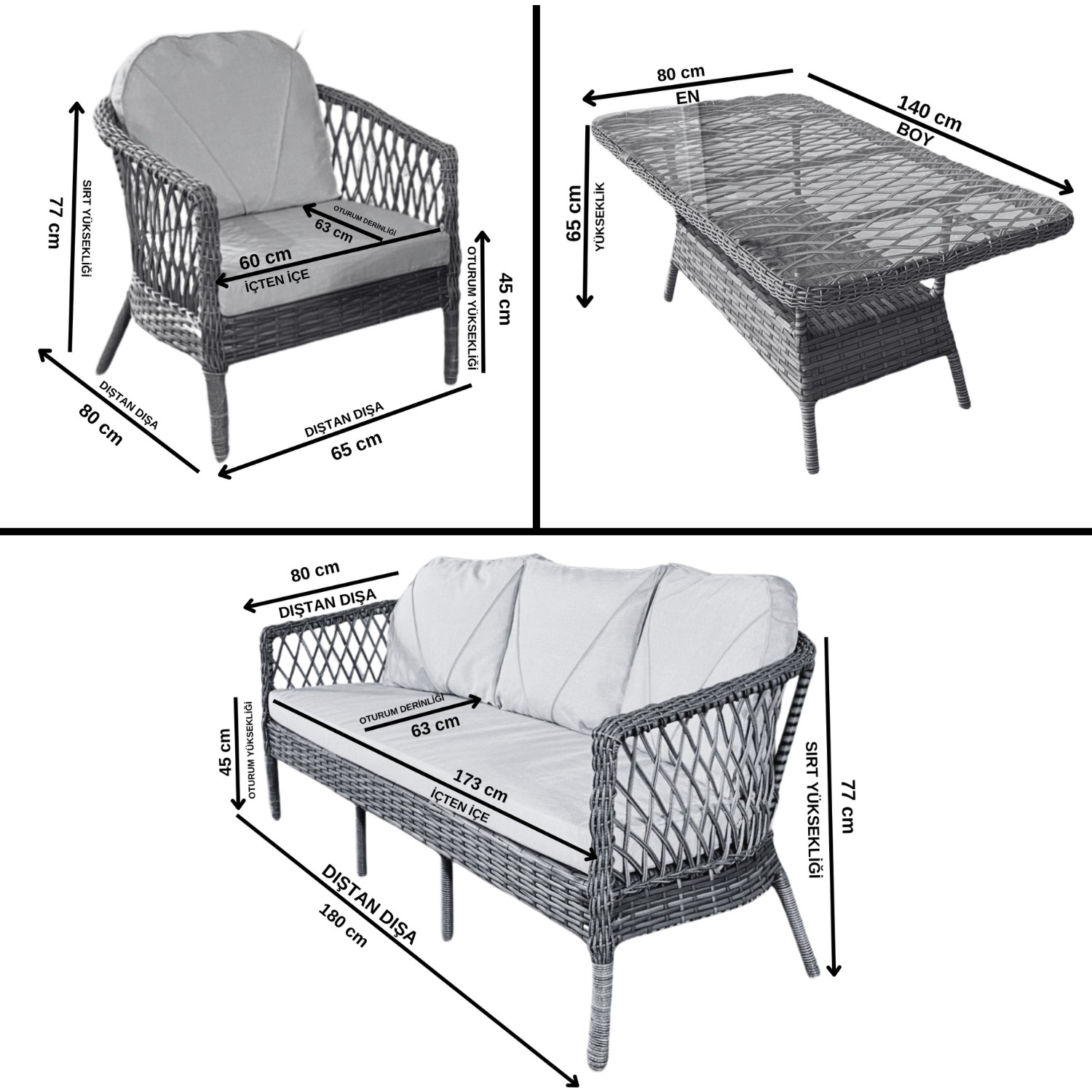 MONALİN HOME GARDEN RATTAN ÖRGÜ OTURMA GRUBU BAHÇE, BALKON VE TERASLARINIZDA KULLANIŞLI VE ŞIK OTURMA ALANLARI OLUŞTURUR.