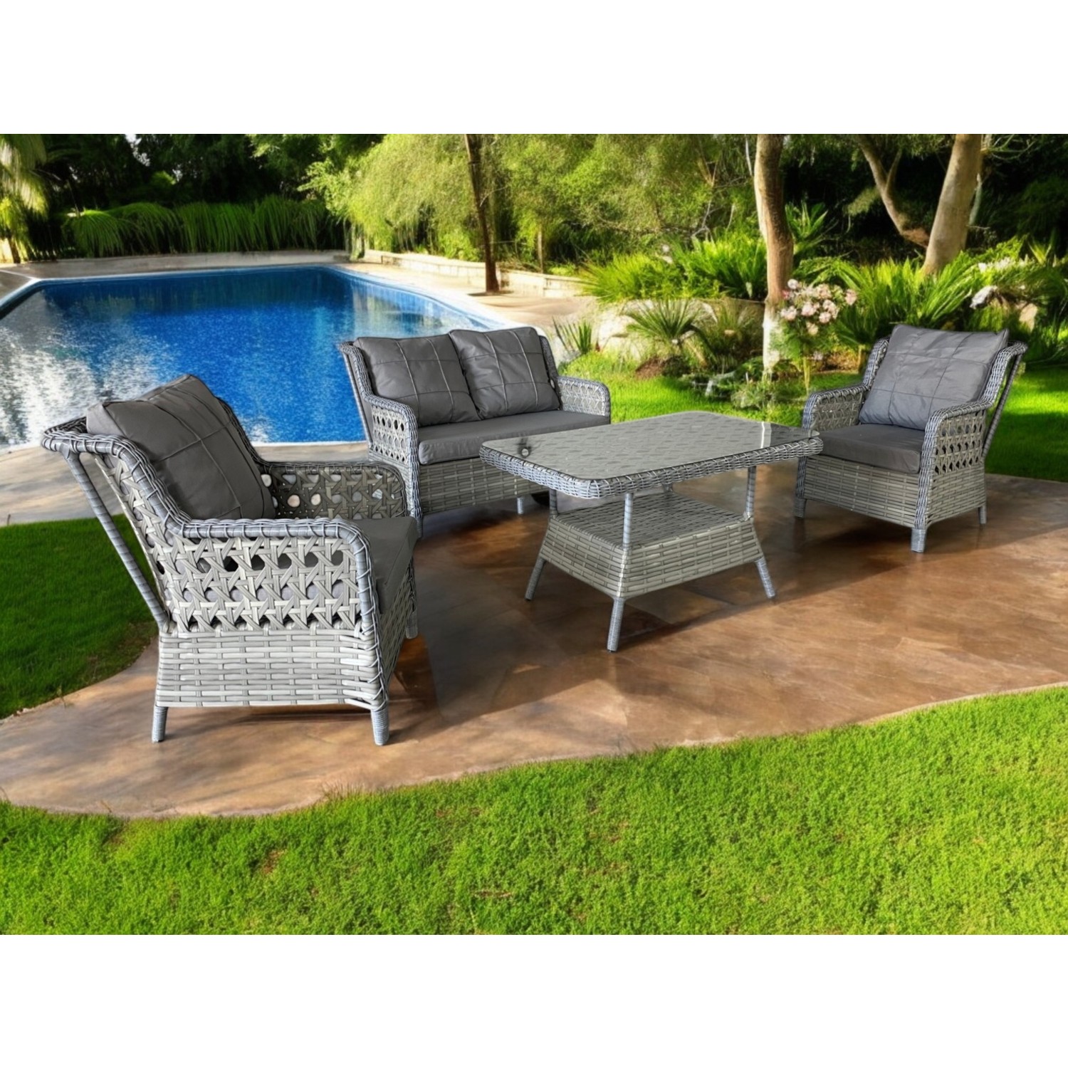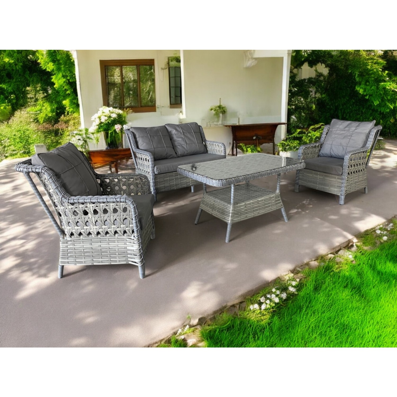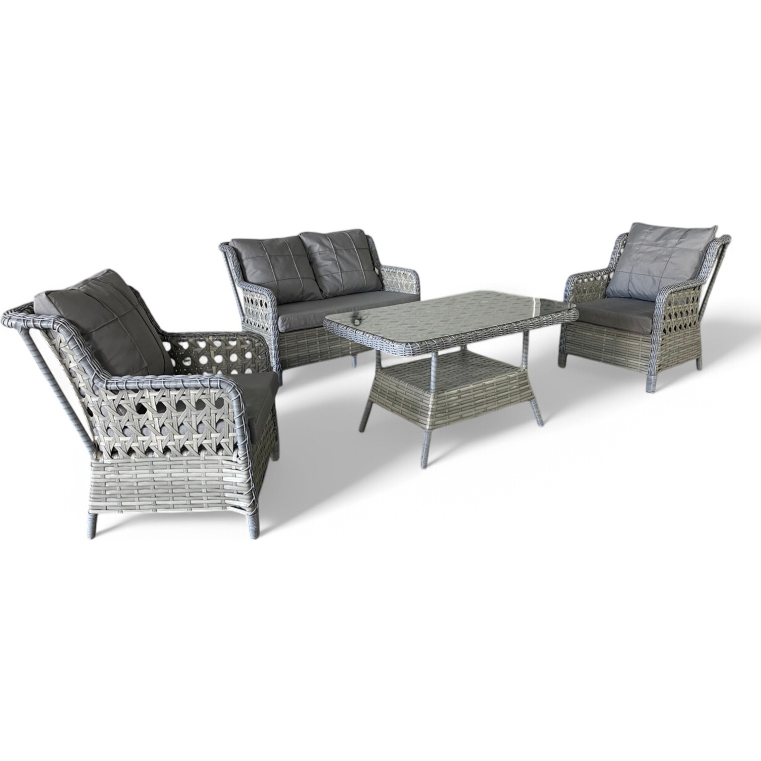 Elite Gri 4 Kişilik(2-1-1-Masa) Rattan Örgü Bahçe & Balkon & Teras Oturma Grubu Minderli & Camlı & Masalı Takım
