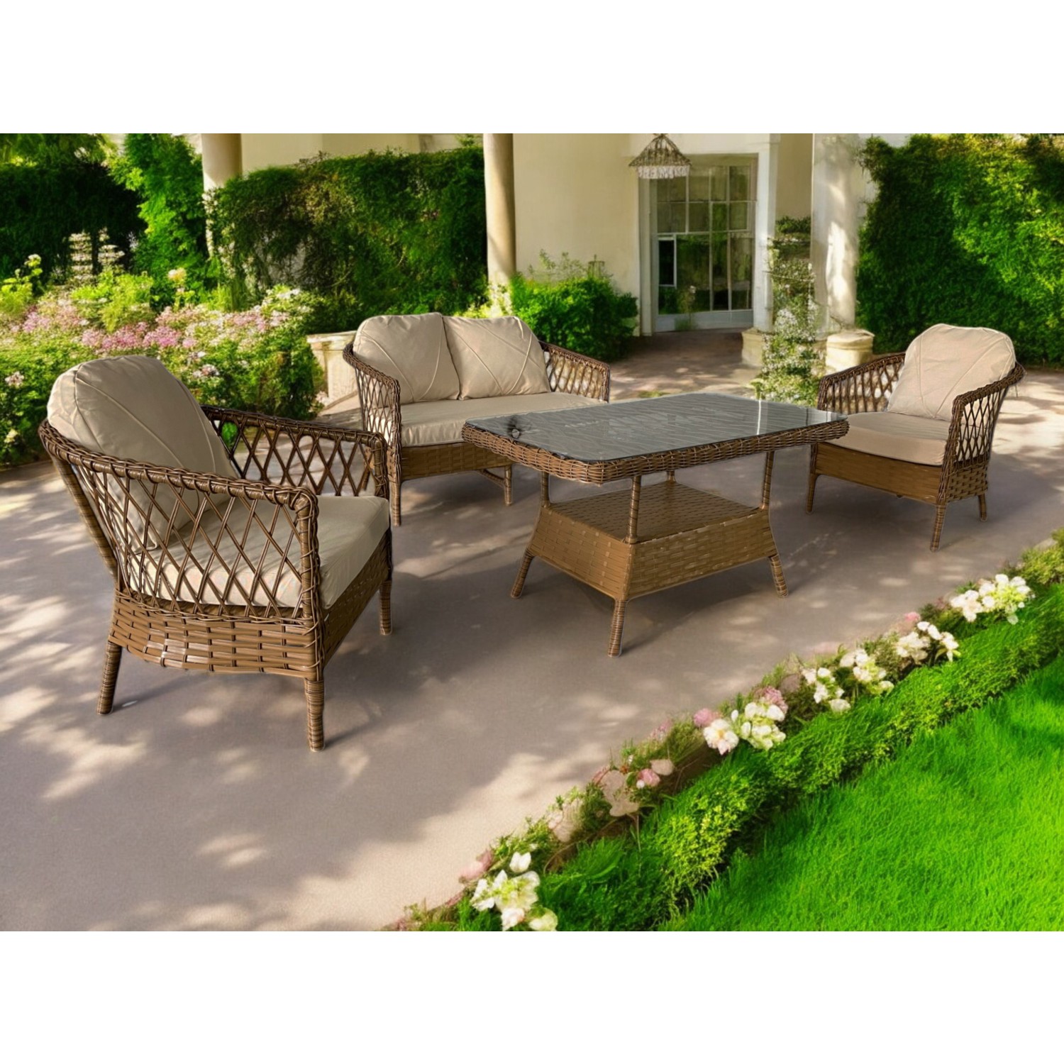 MONALİN HOME GARDEN RATTAN ÖRGÜ OTURMA GRUBU BAHÇE, BALKON VE TERASLARINIZDA KULLANIŞLI VE ŞIK OTURMA ALANLARI OLUŞTURUR.