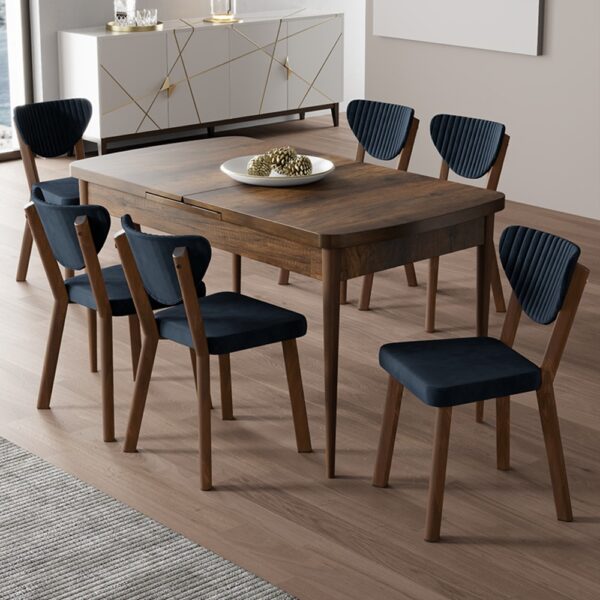 Canisa Exve Serisi 80 x 132 Açılabilir Barok Ahşap Desen Masa Takımı ve 6 Antrasit Sandalye