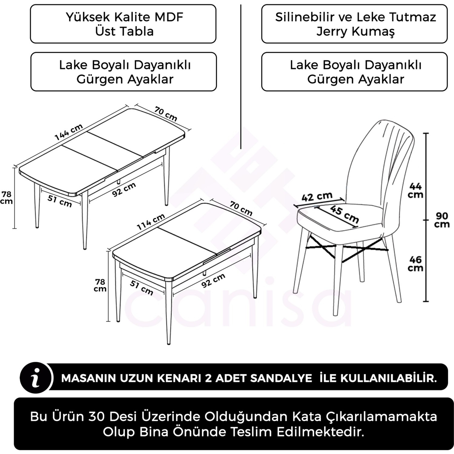 MASA VE SANDALYELERİMİZİN SADECE AYAKLARI DEMONTE GÖNDERİLMEKTEDİR VE KURULUMA HAZIRDIR.