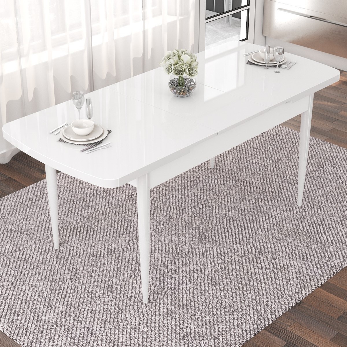 NEF SERİSİ BEYAZ AÇILABİLİR MUTFAK MASA TAKIMI