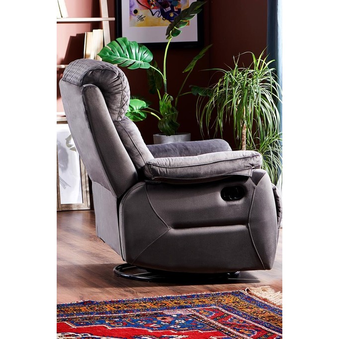 Niron Trone TV Koltuğu Multi Fonksiyonel Baba Koltuğu Sallanan Dönen ve Yatan Koltuk Yumuşak Tuşeli Özel Kumaş Füme