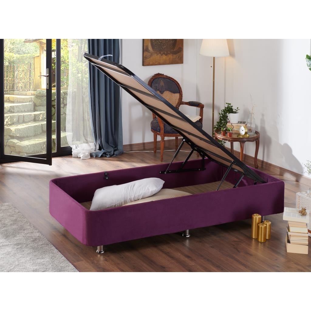 Niron Violet Baza ve Başlık Seti 100X200 cm Tek Kişilik Sandıklı Mor Kumaş Baza ve Başlığı