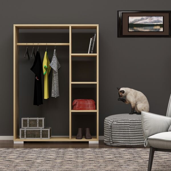 Demonte Dekor Açık Gardırop 4 Raflı, Ahşap Askılık Pro Mini Gardırop Safirmeşe-Safirmeşe
